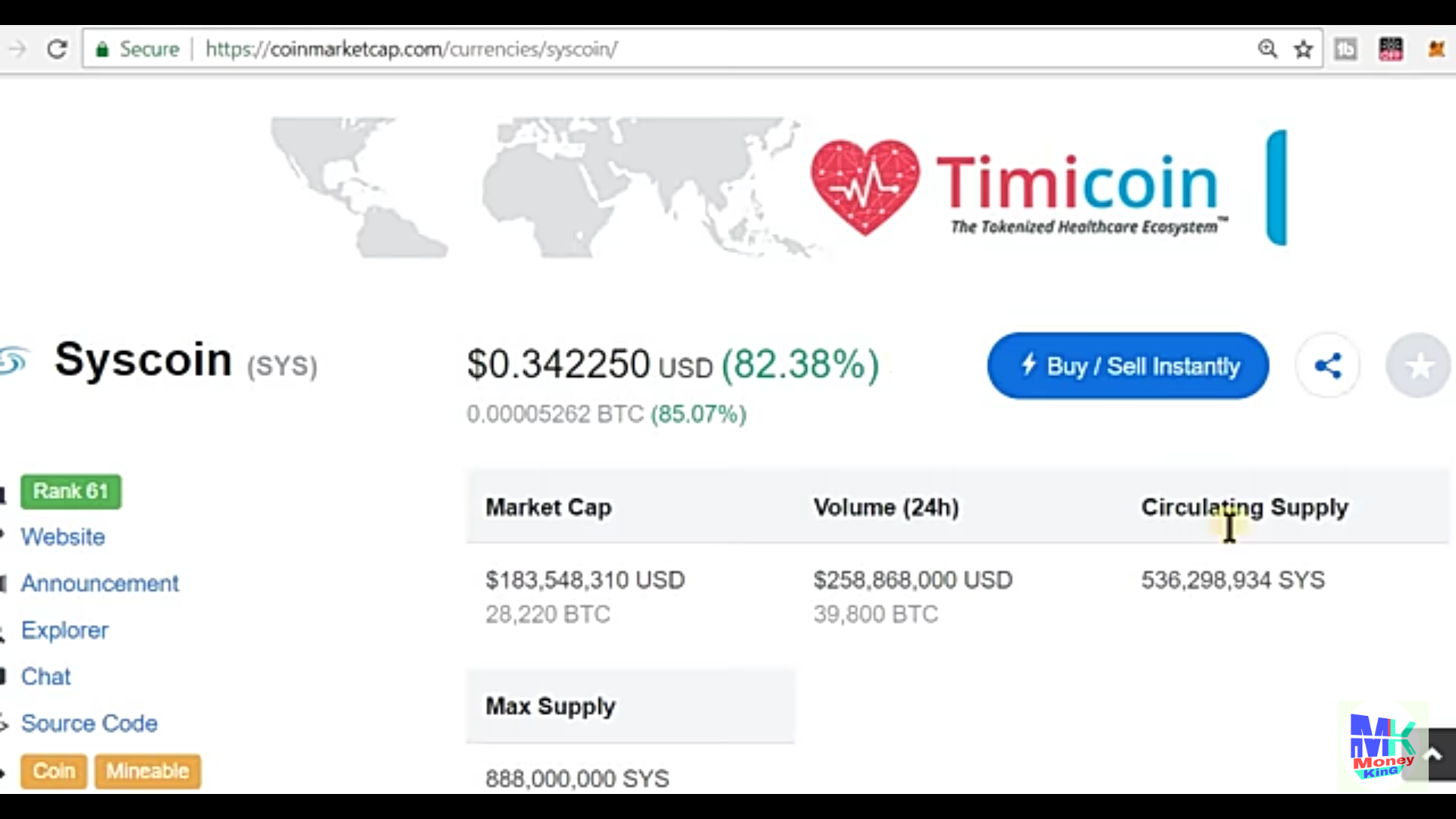 1 Syscoin sold at a price 96 btc