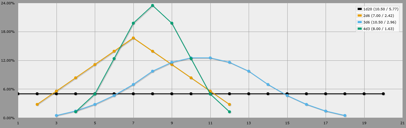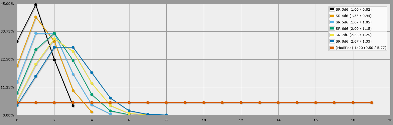 But even with a less swingy dice-system randomness would not be such a problem. In Shadowrun 5 for example you roll multiple d6 and count every 5 and 6, which is also way more predictable. In my 12 or so oneshots I played I only had one, or two circumstances where I thought: "I would really like to fudge that dice roll".