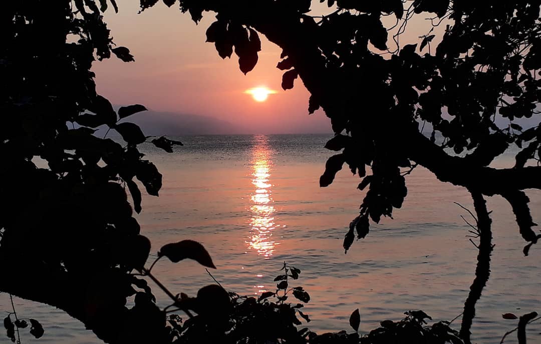 The sun peak through the horizon saying a final goodbye. Before it leaves, it gives me a gift of pure peace and serenity. The view that can captivate any onlooker's eyes, like an angel falling out of the heavens to disappear. The sun sets in the beautiful Island Garden City of Samal, Davao del Norte and the earth waited.