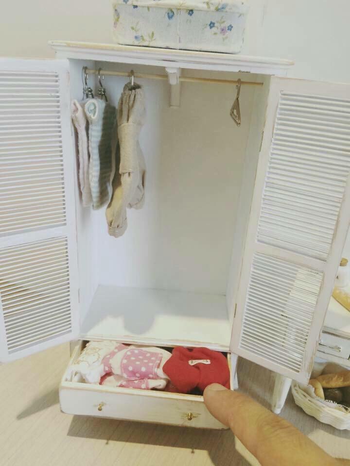 [VN] Móc áo và quần áo tí nị trong tủ quần áo tí hon bằng gỗ được làm bằng tay của Tako.