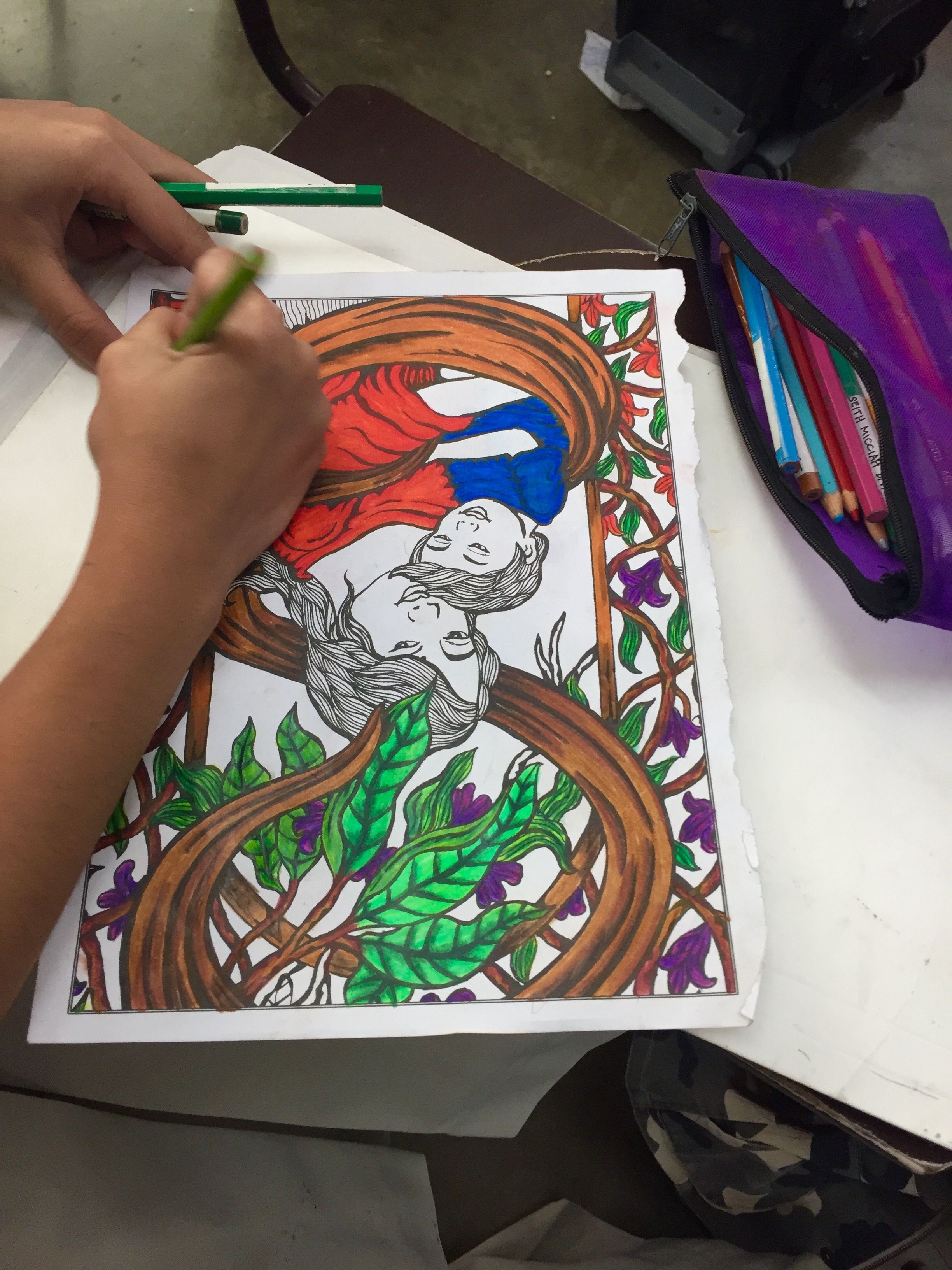 She was engrossed in her coloring materials. (Since the class is done and we are just waiting for their graduation practices, she choose to spend her time in her favorite past time. She has been into the workd of arts since she was Grade 1. However, due to poverty, she was not able to sustain the needs of her hobby thus she borrowed, coloring materials to one of her classmates.