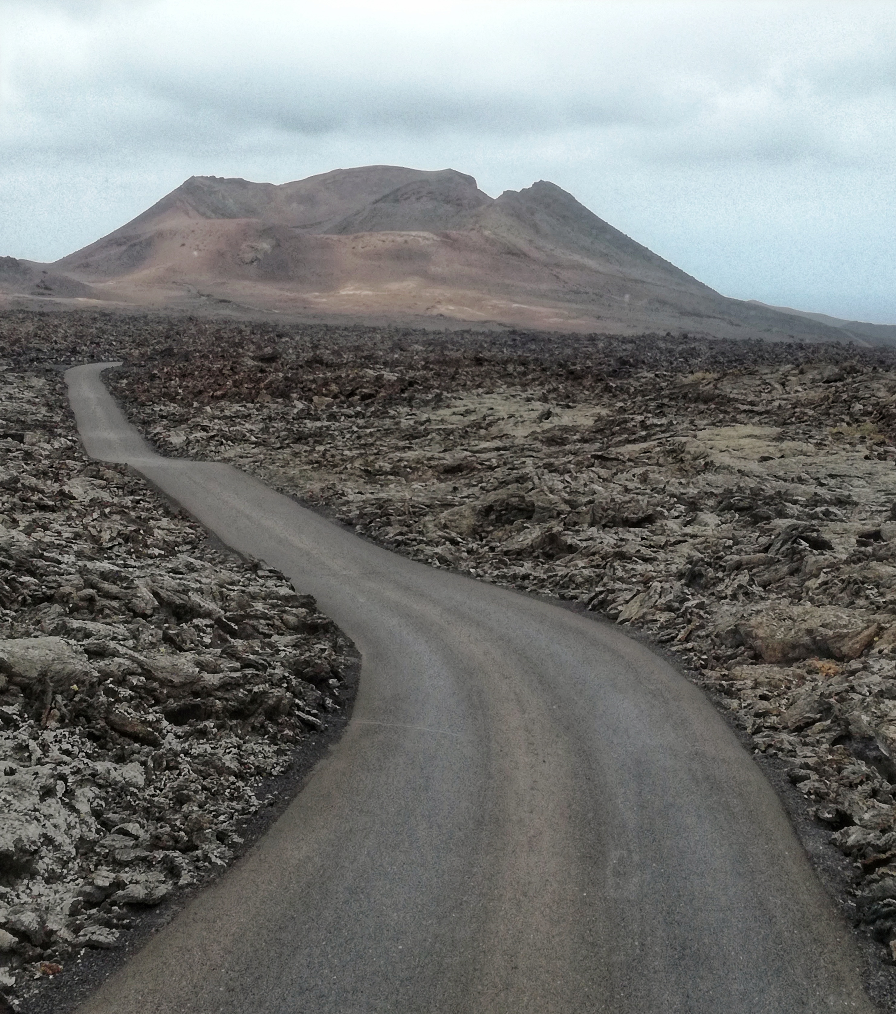 Imagen del Parque Nacional de Timanfaya, en la isla de Lanzarote, en la que se puede apreciar las características coladas de lava resultantes de las terribles erupciones volcánicas que asolaron estos parajes de forma ininterrumpida entre los años 1730 y 1736