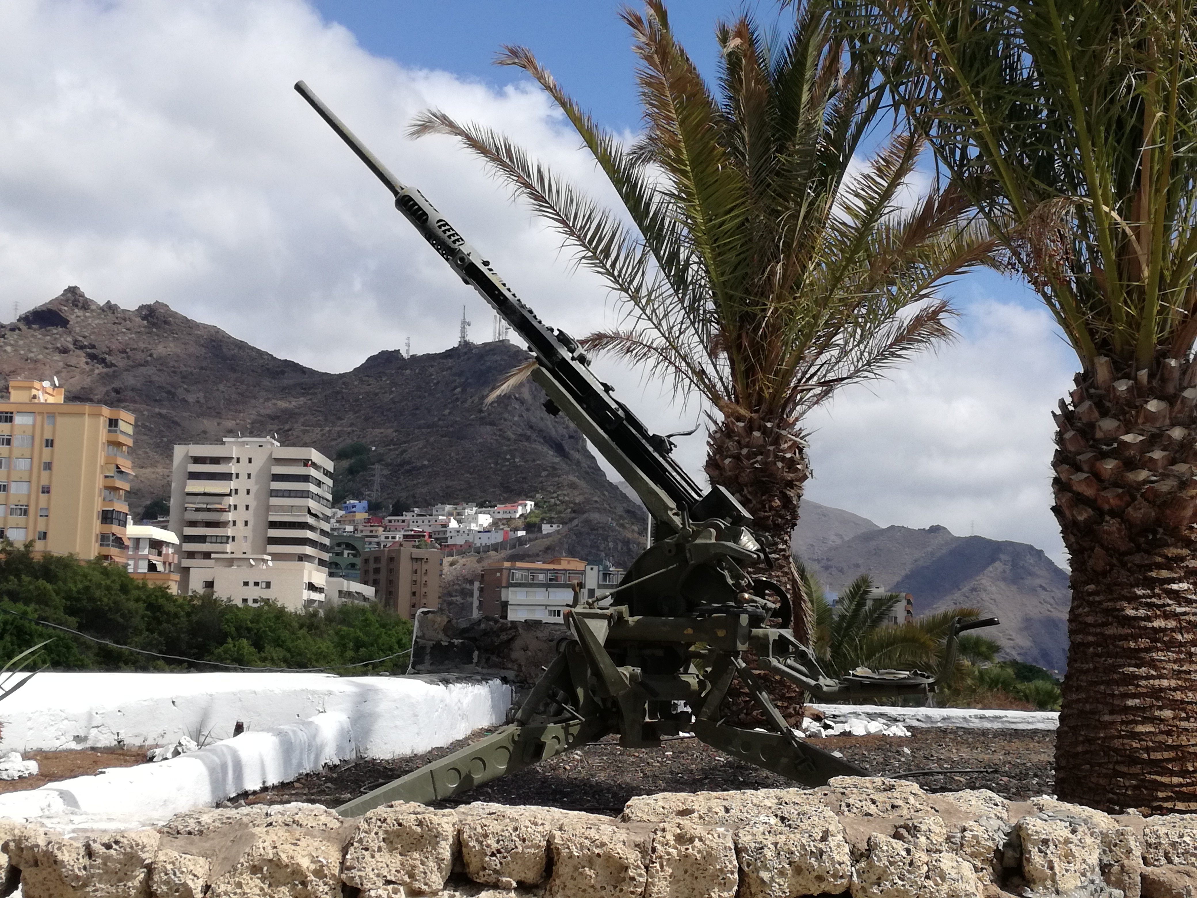 Defensa Antiaereatorkot (65)in #talentclub • 7 years ago Ametralladora de defensa antiaerea y al fondo parte de las montañas que rodean Santa Cruz de Tenerife. Fotografía original tomada con un smartphone Huawei P9Lite #photography #mediaofficials #creativecoin #palnet