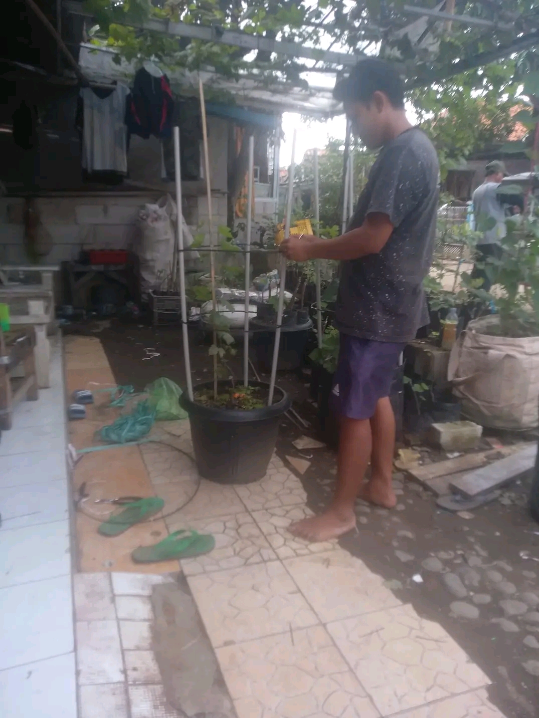 Metode ini sangat cocok untuk tanaman anggur, pohon yang dililitkan ke kawat menampilkan eksotisme tersendiri
