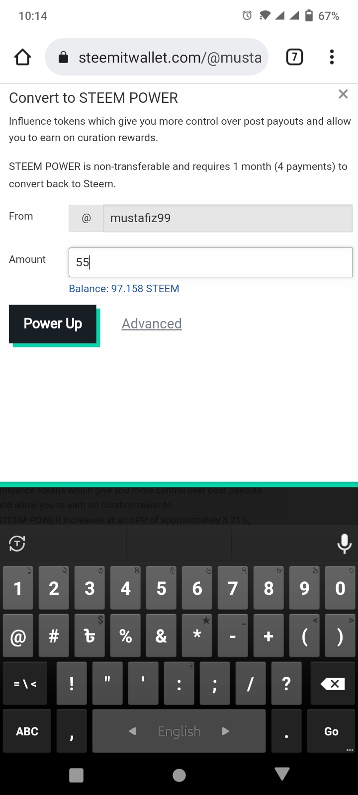 আমি ৫৫ স্টিম পাওয়ার আপ করবো, তাই ৫৫ লিখেছি, পাওয়ার আপ বাটনে ক্লিক করব।