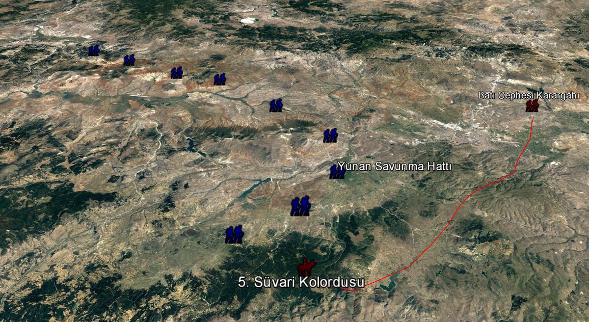 Güneyde bozguna uğrayan Yunan ordusu geri çekiliyor, takip eden Türk süvari birliği Yunan'ın yeniden mevzi almasını engelliyordu.