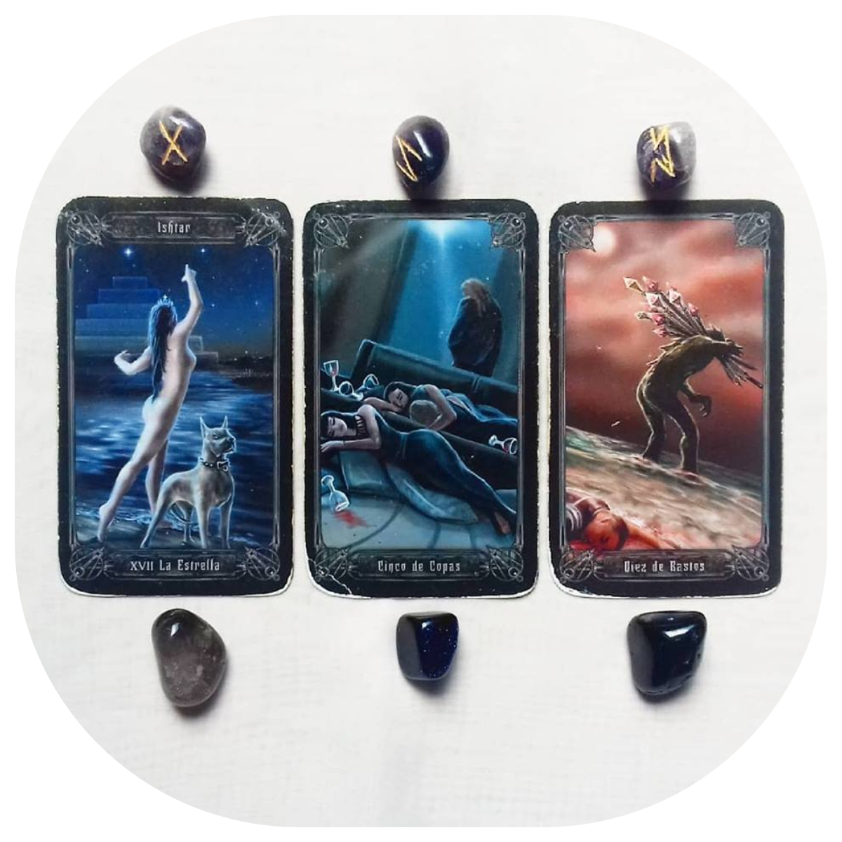 (Card: 5 of Cups, Rune: Eihwaz, Crystal: Blue Goldstone) 3