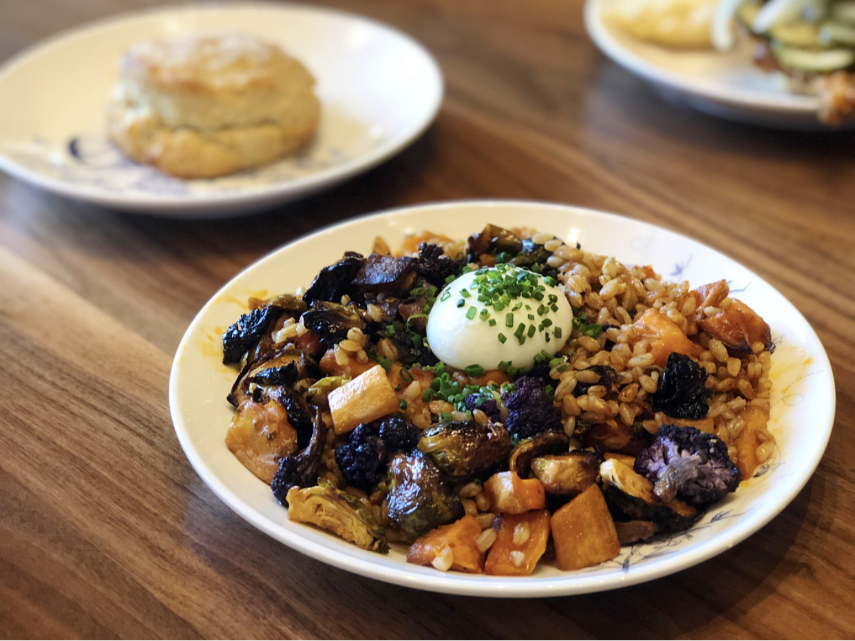 roasted local veggies, paprika, farro, poached egg