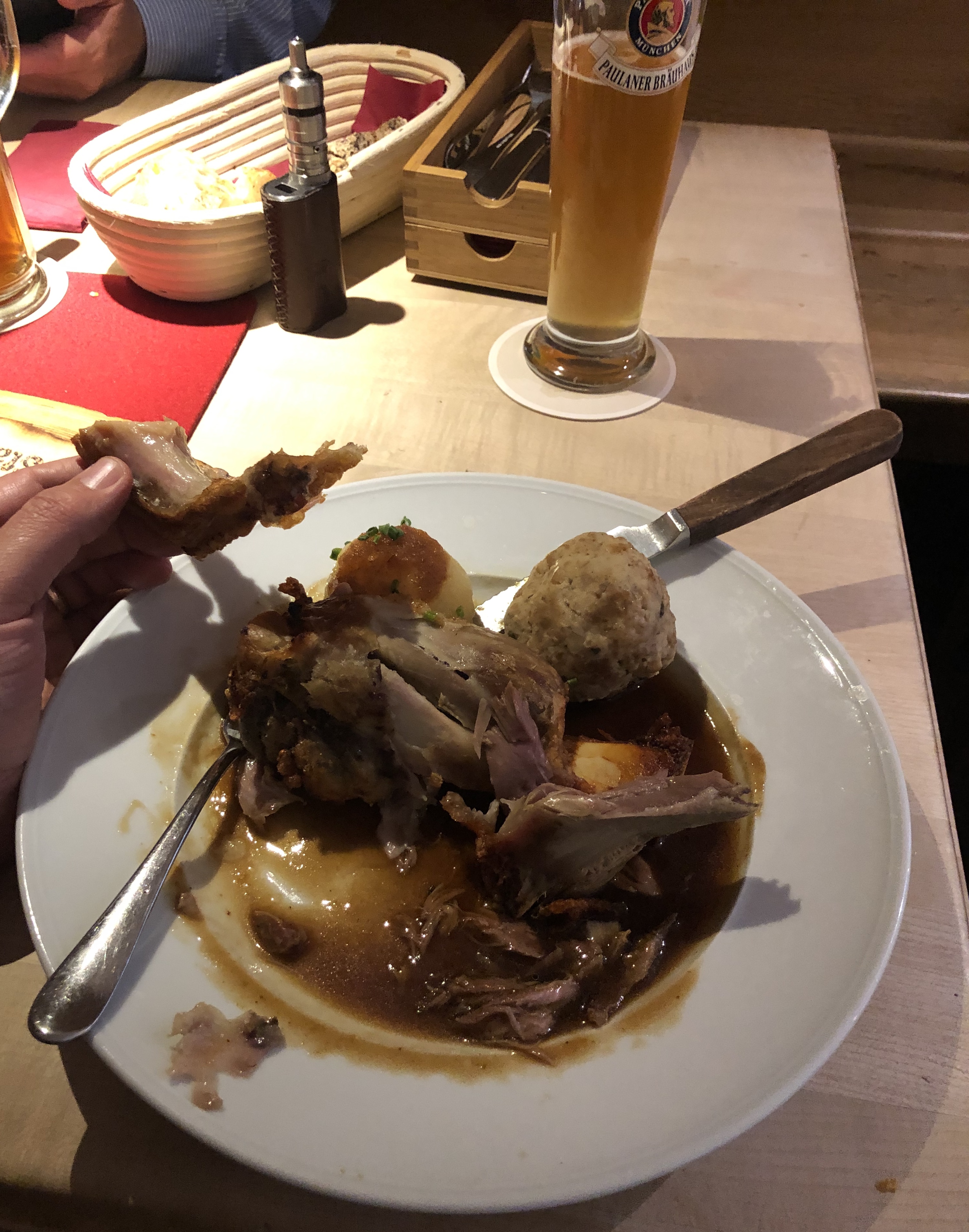 Mir hatte er erst einen Schweinebraten gebracht obwohl ich eine Haxe wollte, diese hab ich dann aber auch ohne Probleme bekommen.