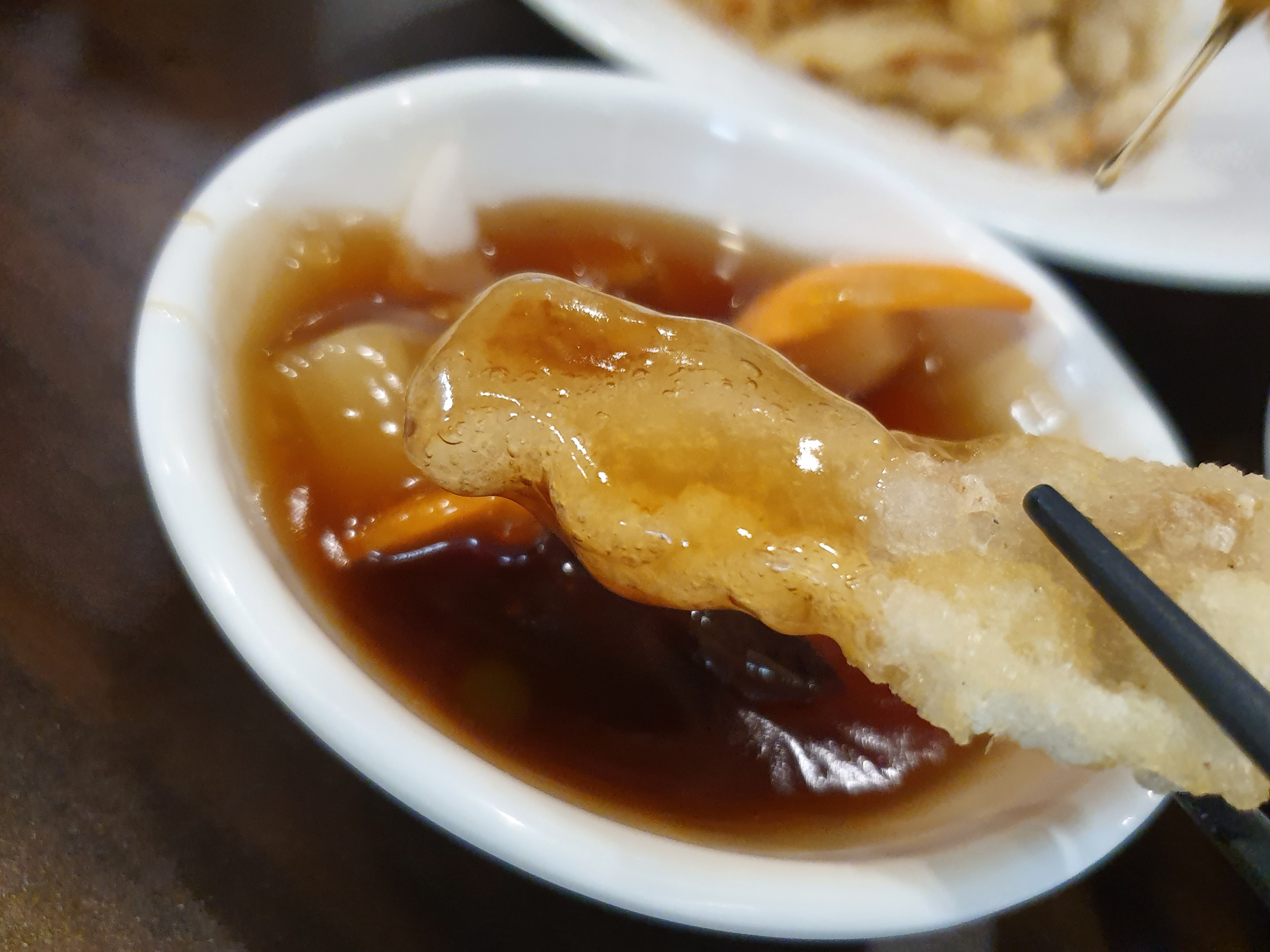 전분에 튀겨낸 바삭한 고기튀김을 단짠단짠 소스에 푹 찍어 먹는 맛!