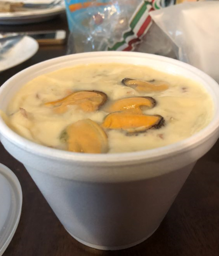 Bobette's is famous for it's award winning Mussel Chowder. It's New England style, which means it has as nice creamy broth. This is @nicollefiallo's favorite thing to get at Bobette's. I ordered a large cup for me and a large cup for @nicollefiallo. The large goes for $5.25. It's always good, although sometimes it is creamier than others. As you can see in the photo, there are some freshly shucked whole mussels floating at the top of the soup.