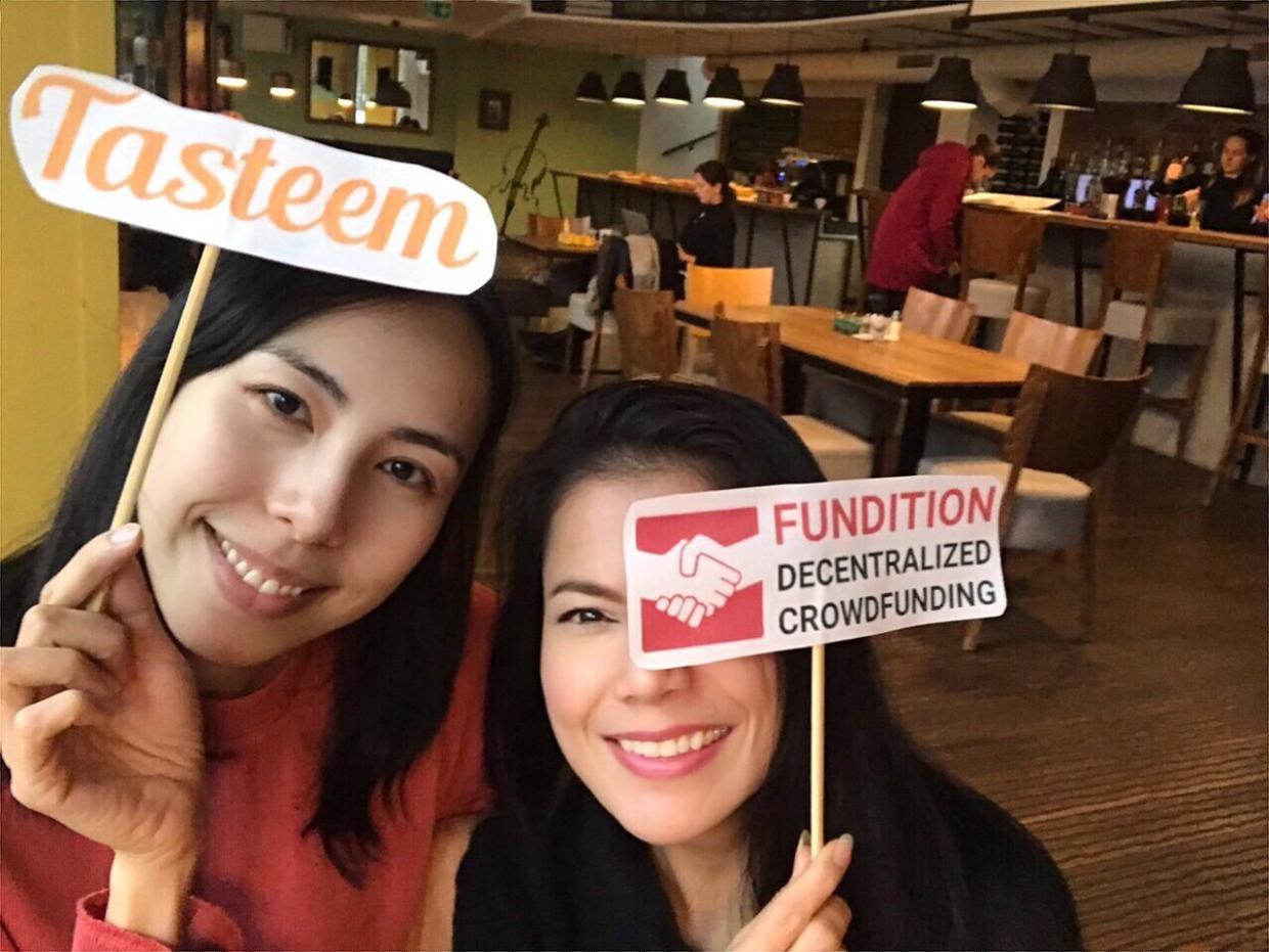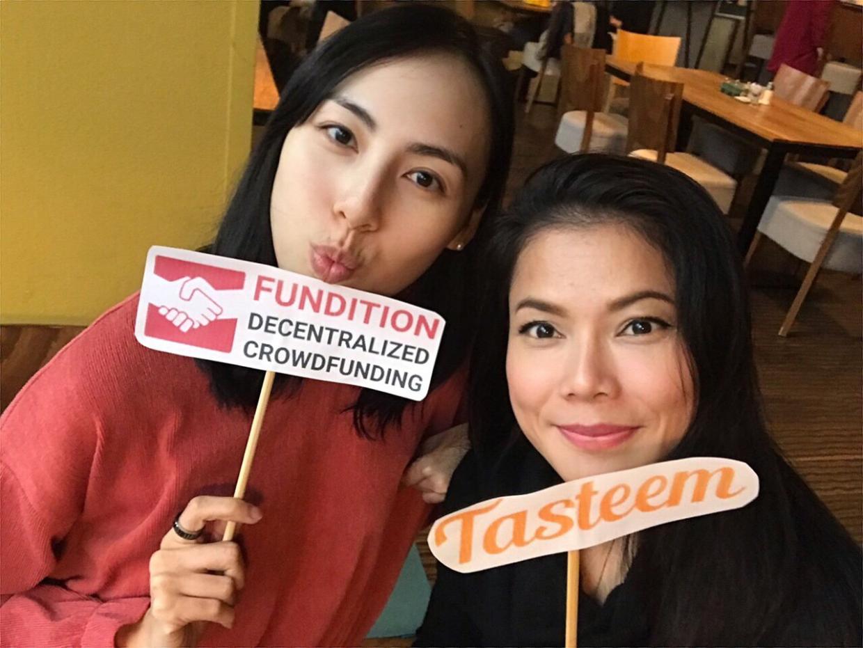 Sharing some random photos we took during our meal - us holding the different signs for both Tasteem and Fundition (pictures from @siamcat)