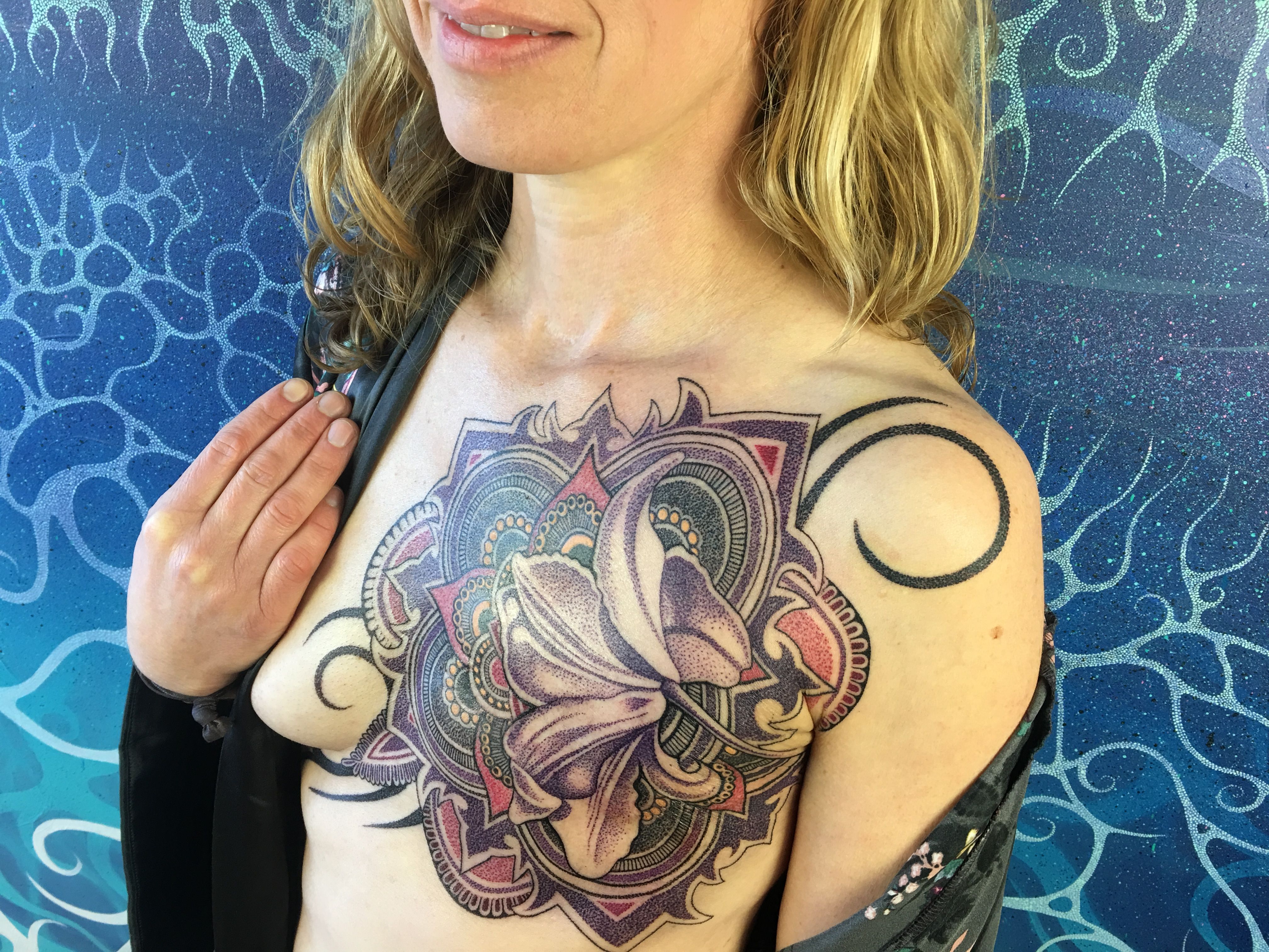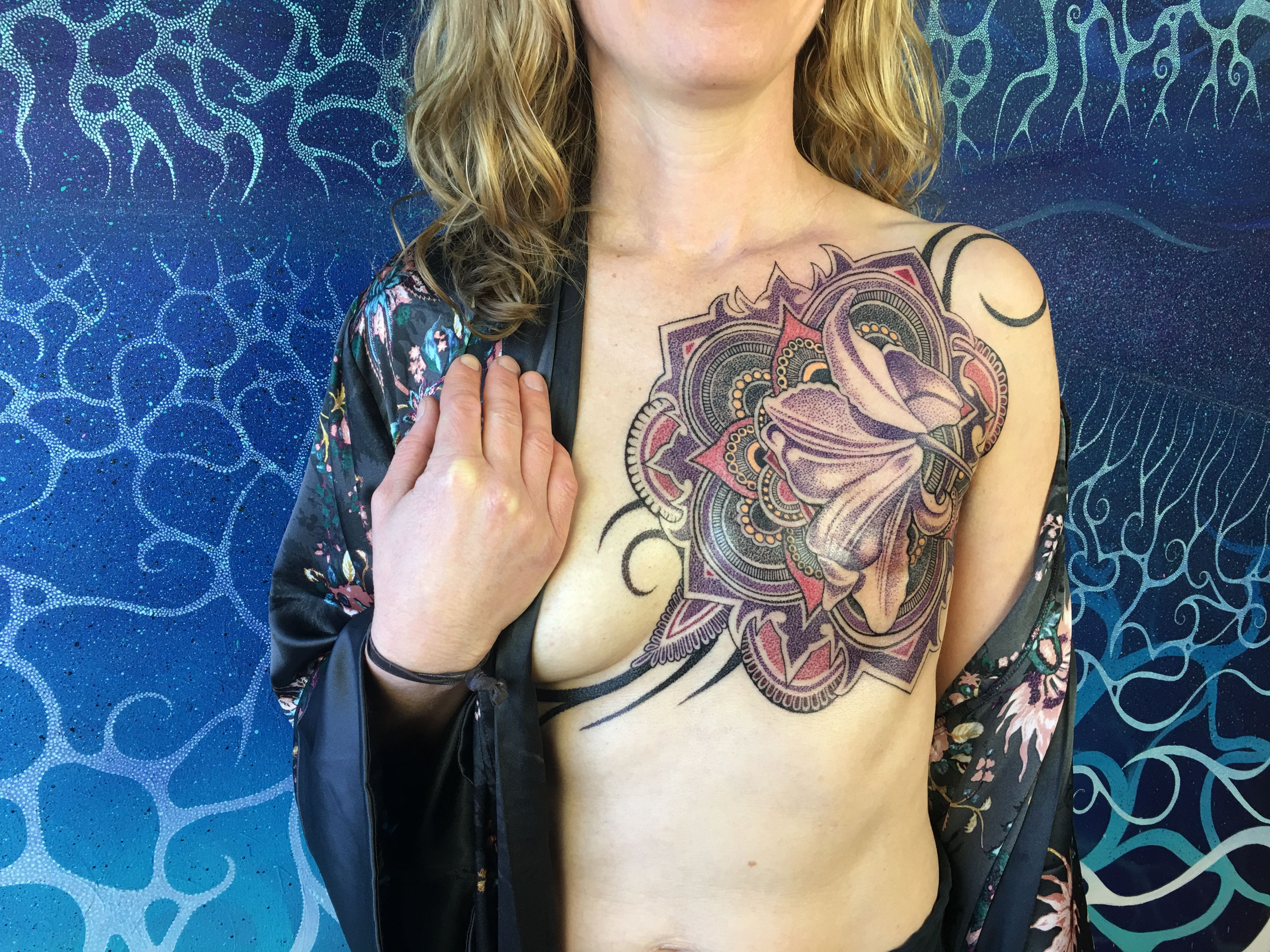 In time, I will see how the tattoo changes me, how it shifts the subtle energy of asymmetry and the trauma of surgery and cancer; how, slowly but surely, the tattoo births something new and healing.