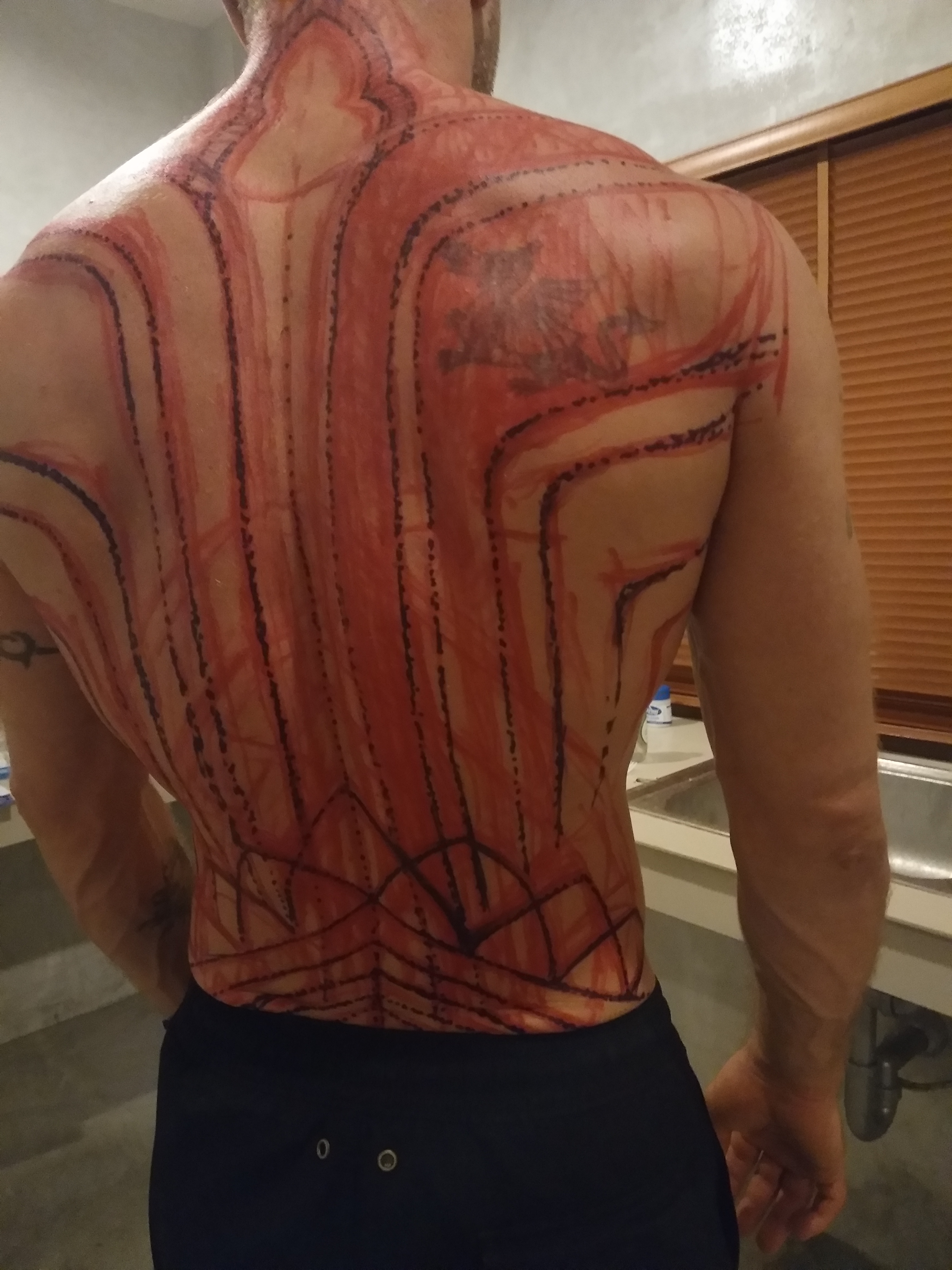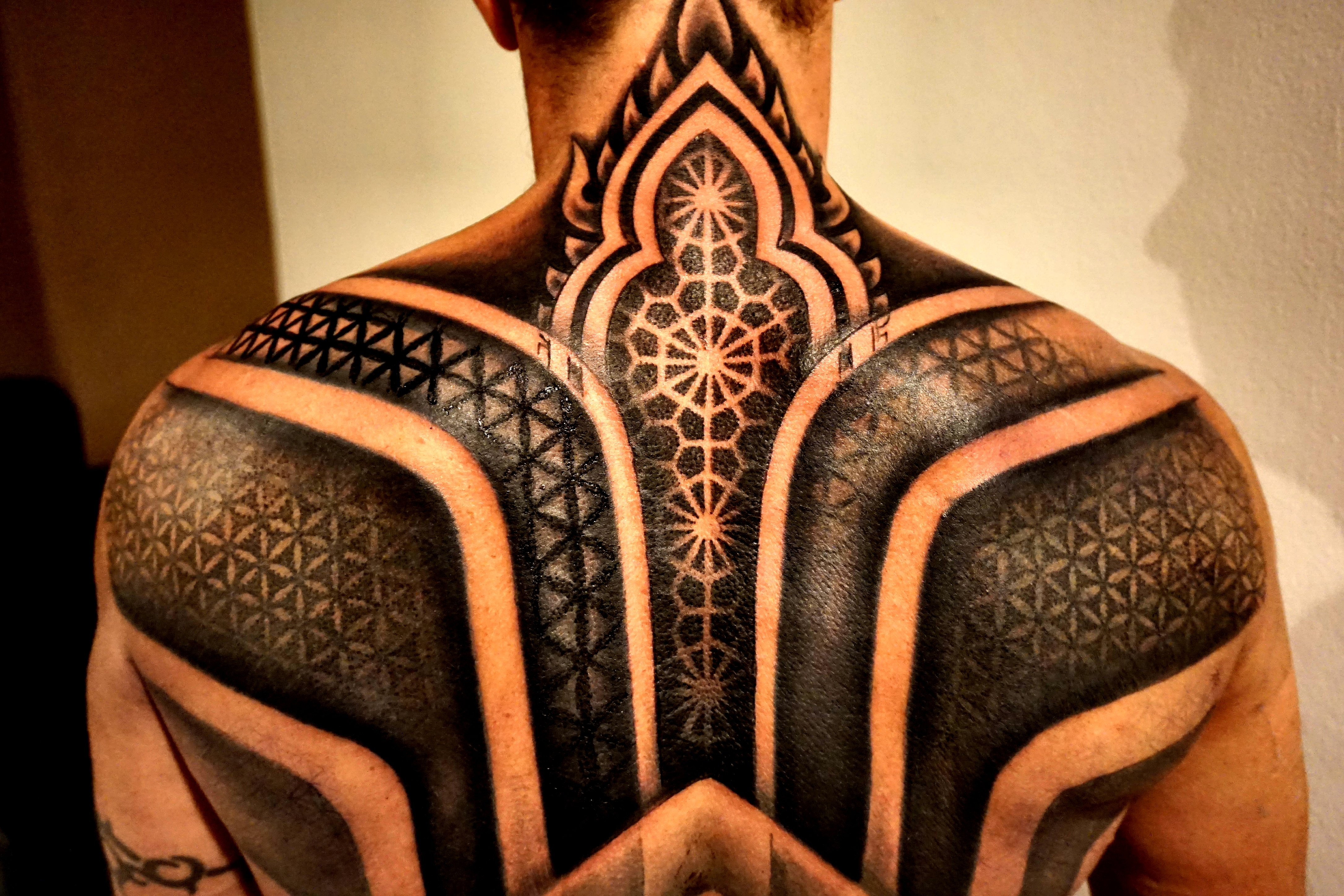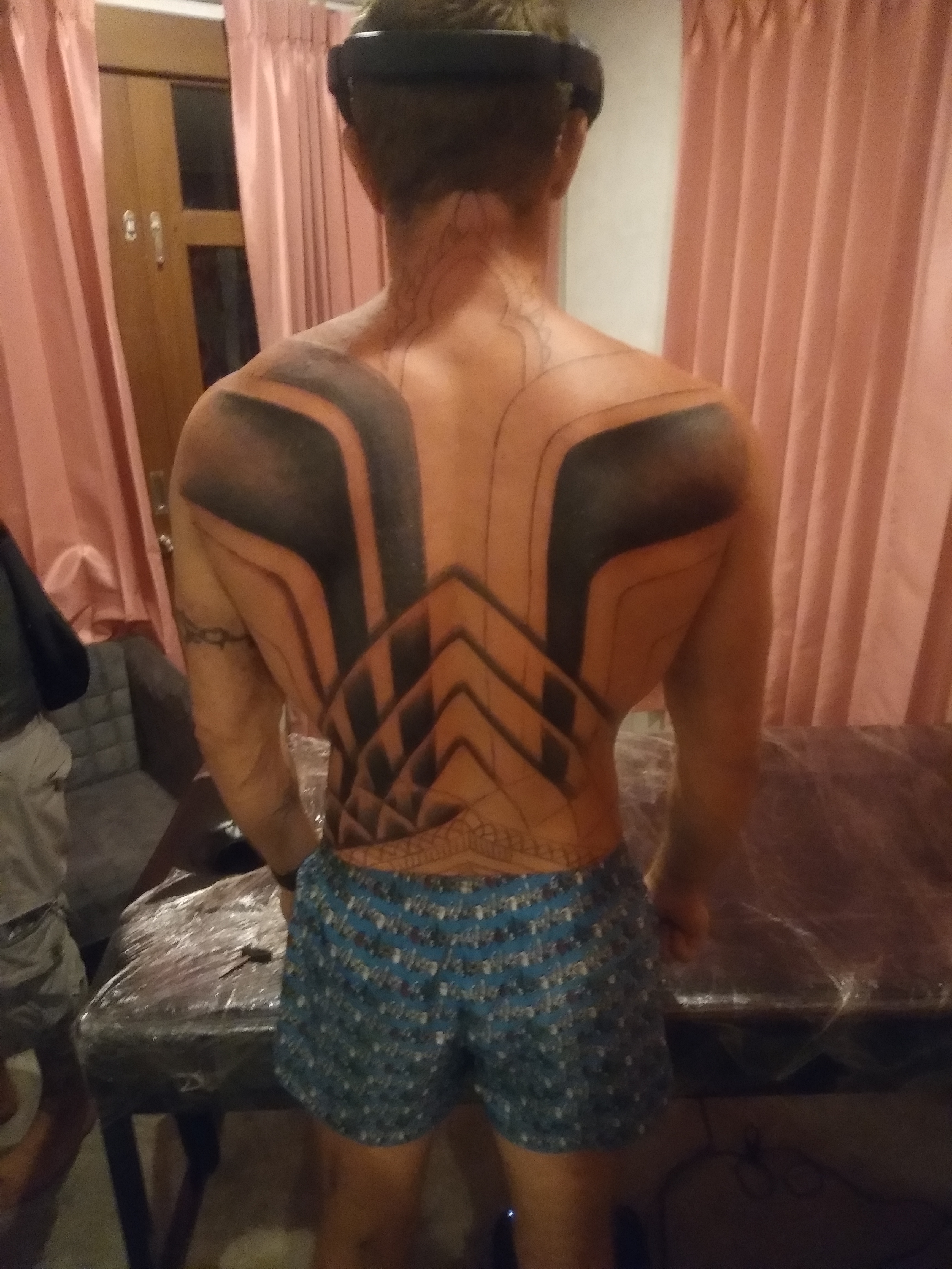 After that marathon session it I had to heal.. My back was a big wound.. And I was destroyed.. If I knewed it was so many many hours to get it done and so much pain I would probably have been think about this 2 times before I started 😜. My back piece tattoo is inspired by futuristic style and the flower of life.. Exactly one year after first session we did 2 days more in Bkk.. So now I have around 70 hours tattooing on my back and around 60 percent done... I hope 🙏
