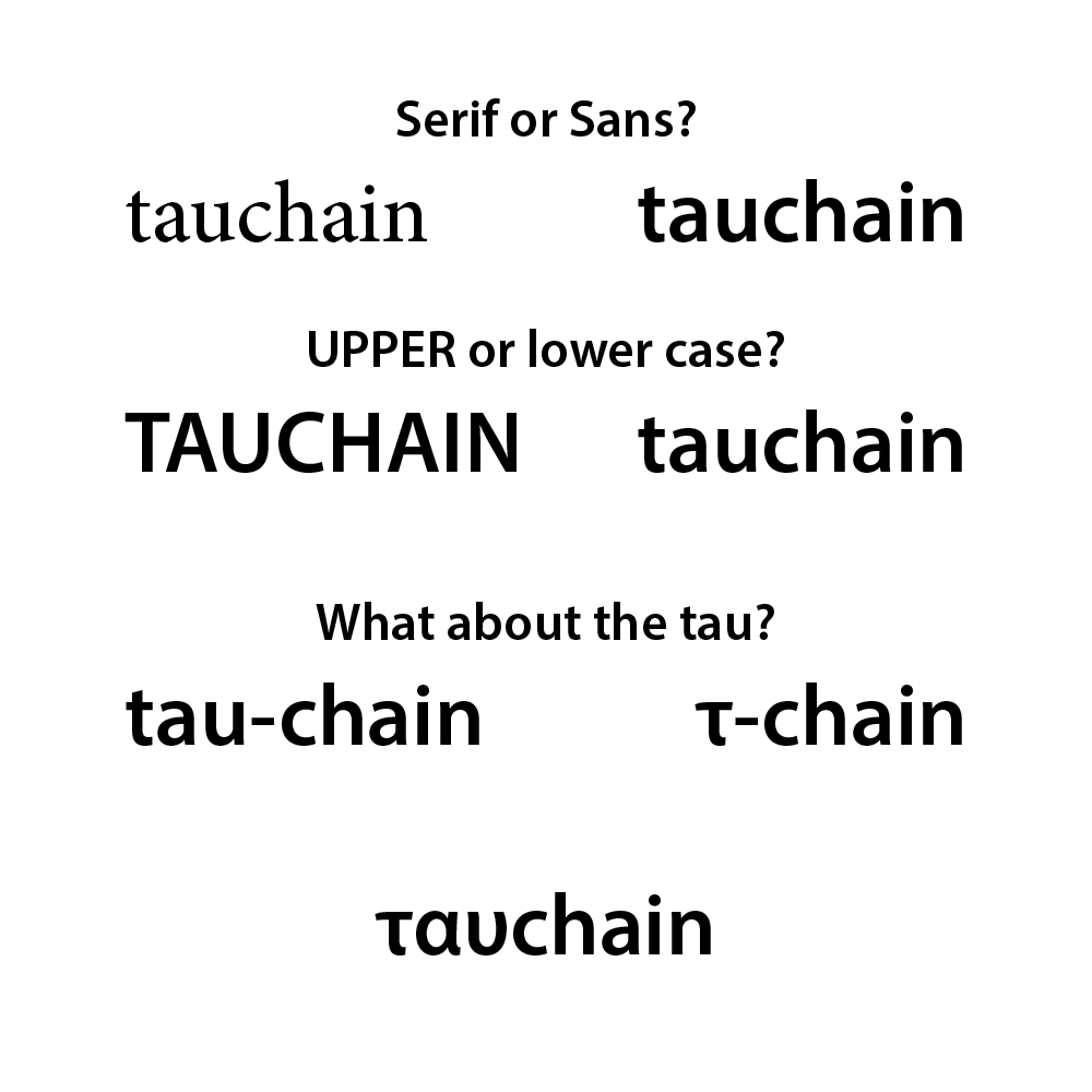 TAUCHAIN! or tauchain? The upper case version looks like it's screaming at us. The lower case version looks friendlier, it's more readable and it also looks very modern und understated. Facebook, amazon and ebay don't care about upper case, neither should we.Tauchain, Tau-chain or τ-Chain? ταυchain!