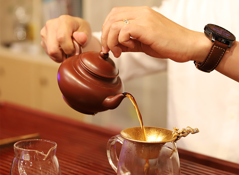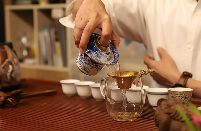 자사호나 개완을 사용했을 때, 두 번 우린 차를 큰 숙우에 담아 4명씩 마실 차의 양을 작은 숙우 2개로 나누어 사용하면 찻잔에 7부 정도의 양을 넣고 마시게 되는데, 이때 차의 깊은 맛을 한 잔으로 충분히 느낄 수 있다고 한다. 9명이나 10명이 되면 차의 양을 5부나 6부 정도로 적게 따르게 된다. 그러면 차의 충분한 맛을 즐길 수 없게 되기에 이런 방식을 고집하고 안이 깊은 찻잔을 사용한다고 했다.