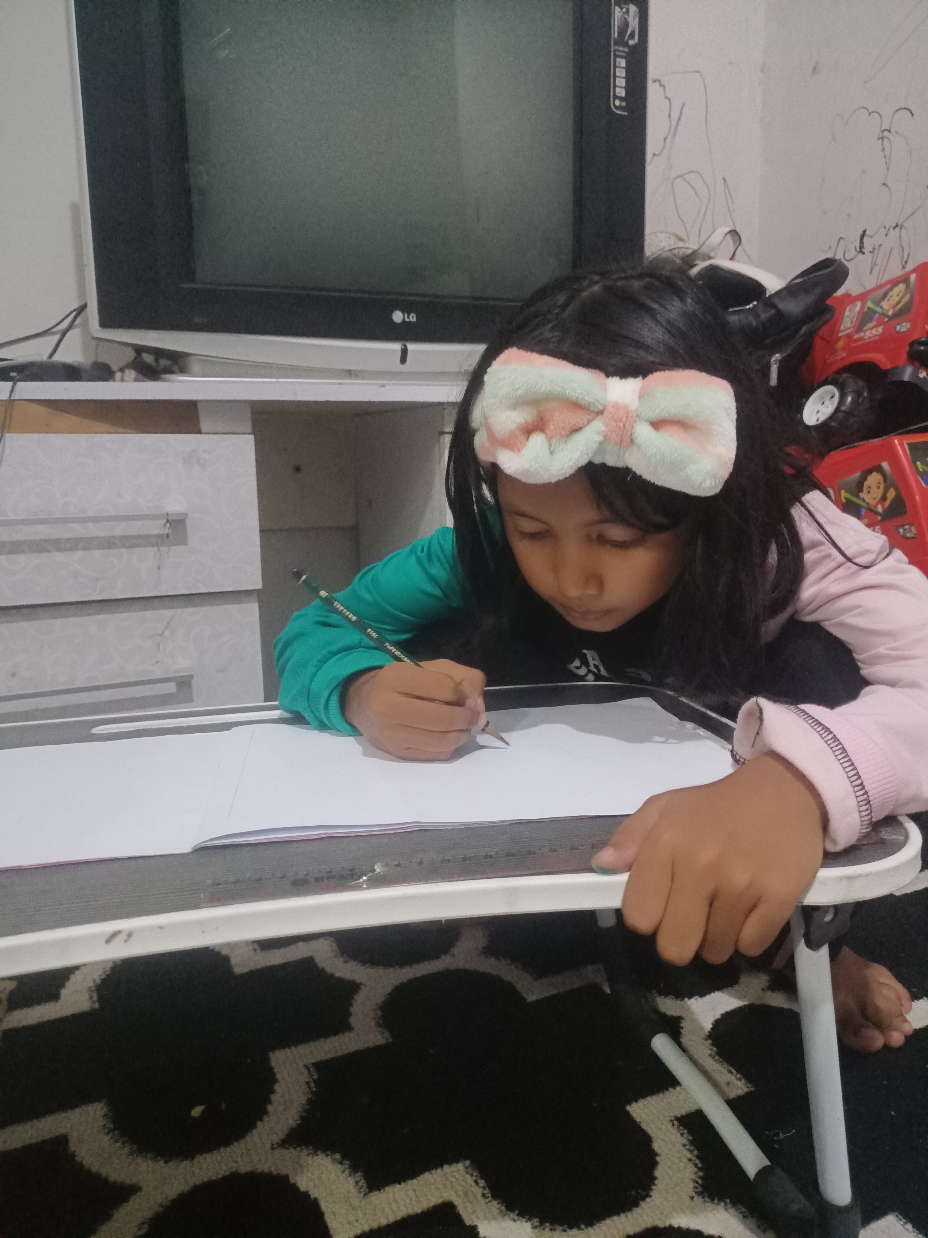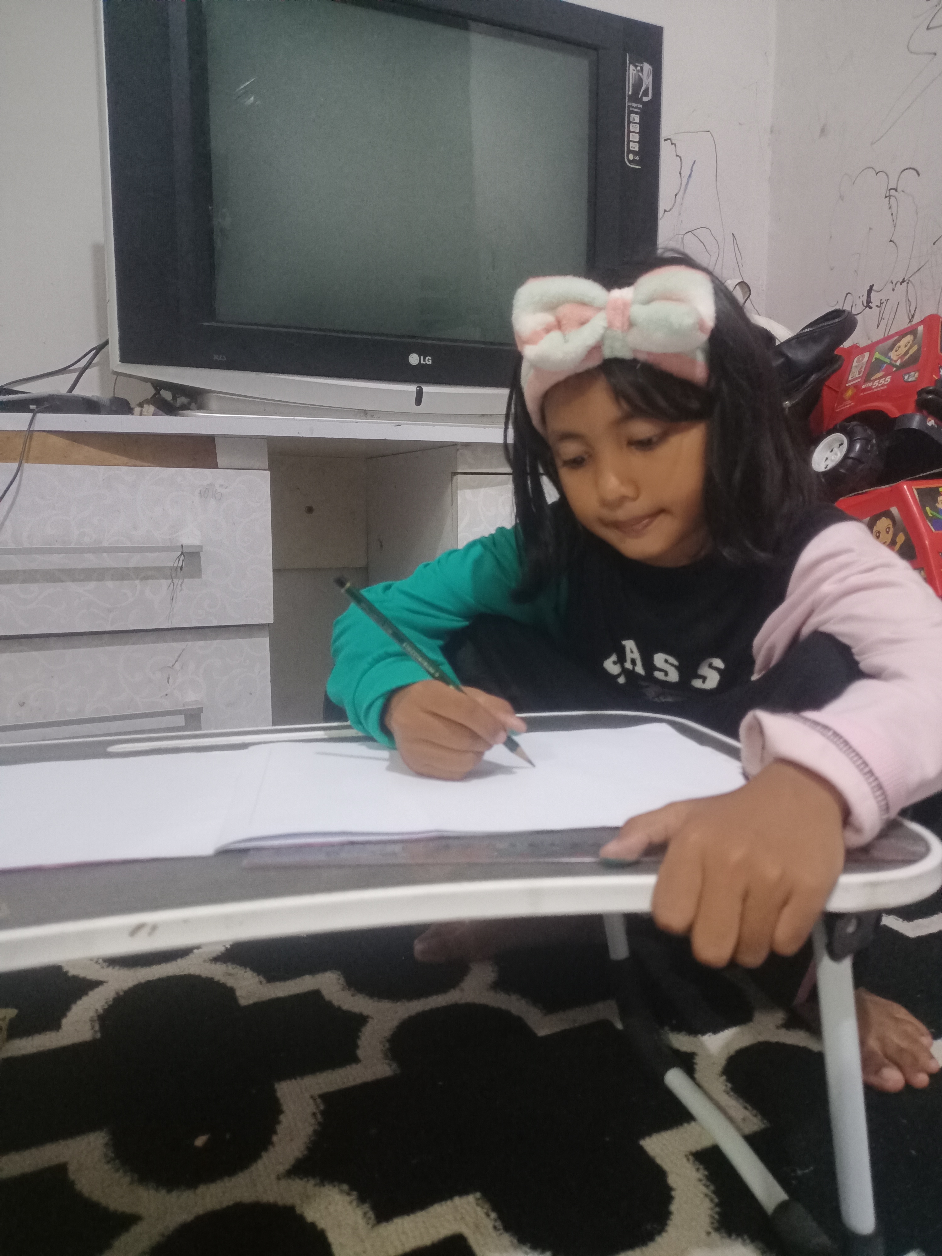 Saya sangat bangga dan bahagia masih memiliki kesempatan untuk menemani putri saya mengerjakan pekerjaan rumah (melukis). Apalagi sekarang putri saya lagi senangnya melukis, putri saya sedang menikmati waktu melukis. Saya juga baru saja membelikan putri saya cat air, crayon dan pensil warna untuk menambahkan semangat putri saya dalam mengasah otaknya pada saat melukis. Saya akan selalu mendukung setiap kegiatan positif yang disenangi oleh putri saya. Karena melukis salah satu kegiatan yang sangat baik untuk putri saya. dengan melukis putri saya bisa berimajinasi, berpikir kritis, menumbuhkan ide baru dan juga mengasah motorik halus untuk putri saya. Saya sangat bahagia dengan kegiatan melukis yang disegani oleh putri saya. Saya bahagia karena putri saya bahagia