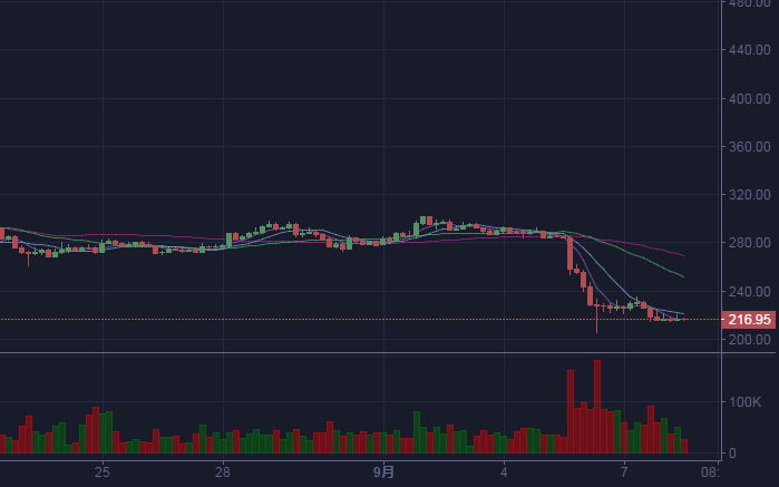 最近的ETH跌的不成样了,大家还好吗?eya123 (25)in #teachers • 8 years ago (edited) 经过9.5号的整个币圈市场的大跌,ETH已经跌至216美元附近了,日线图上看,应该还每到底,想抄底的朋友可以先观望。 #eth