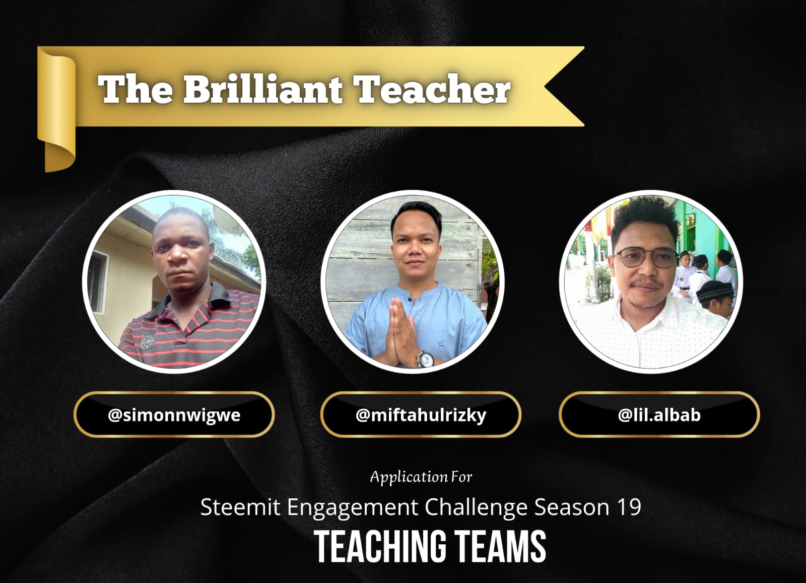 We have been communicating with fellow steemians who are teachers, and we would like to apply for the Season 19 Challenge to form a Teaching Team. We named our team "The Brilliant Teacher."