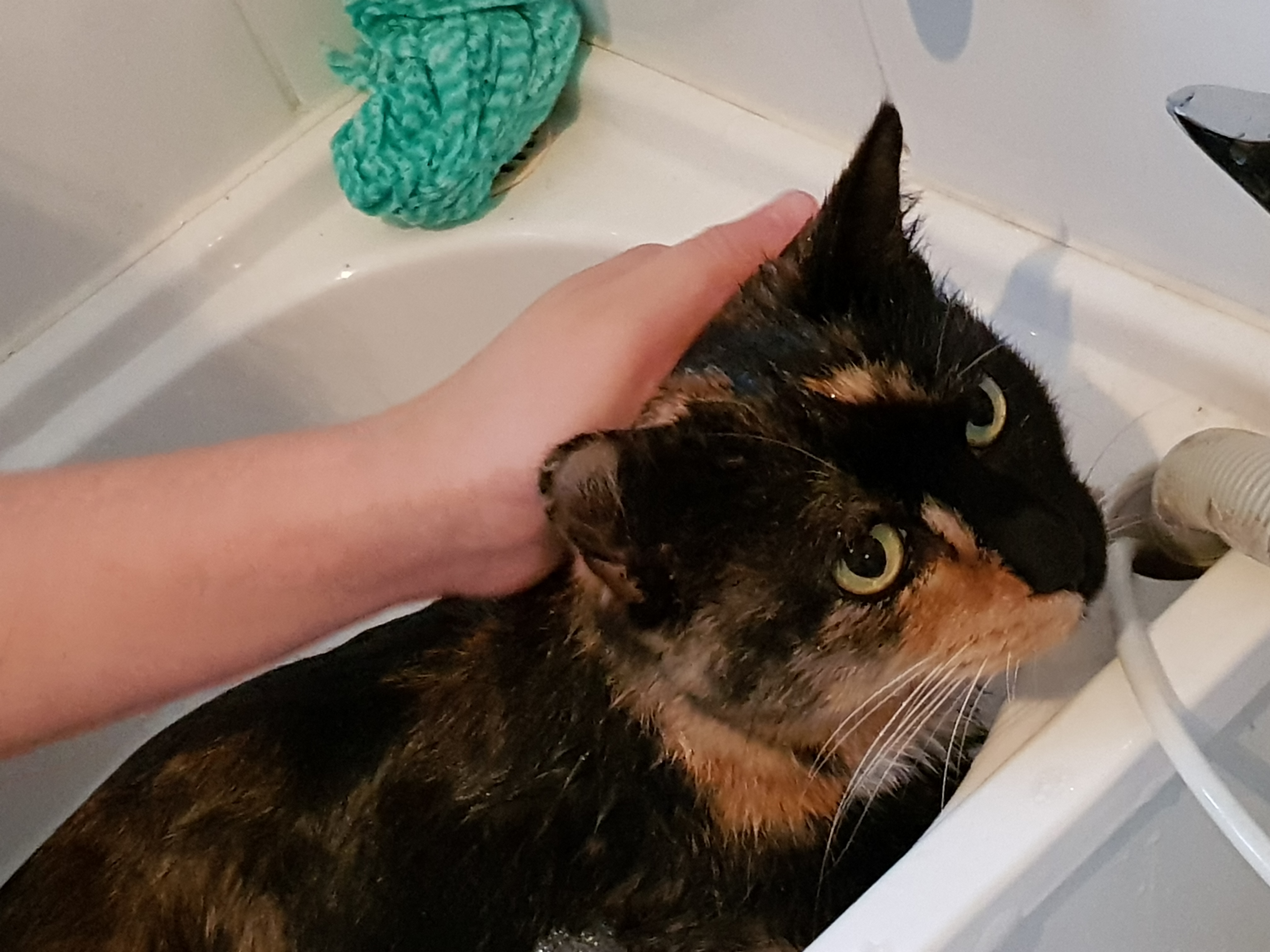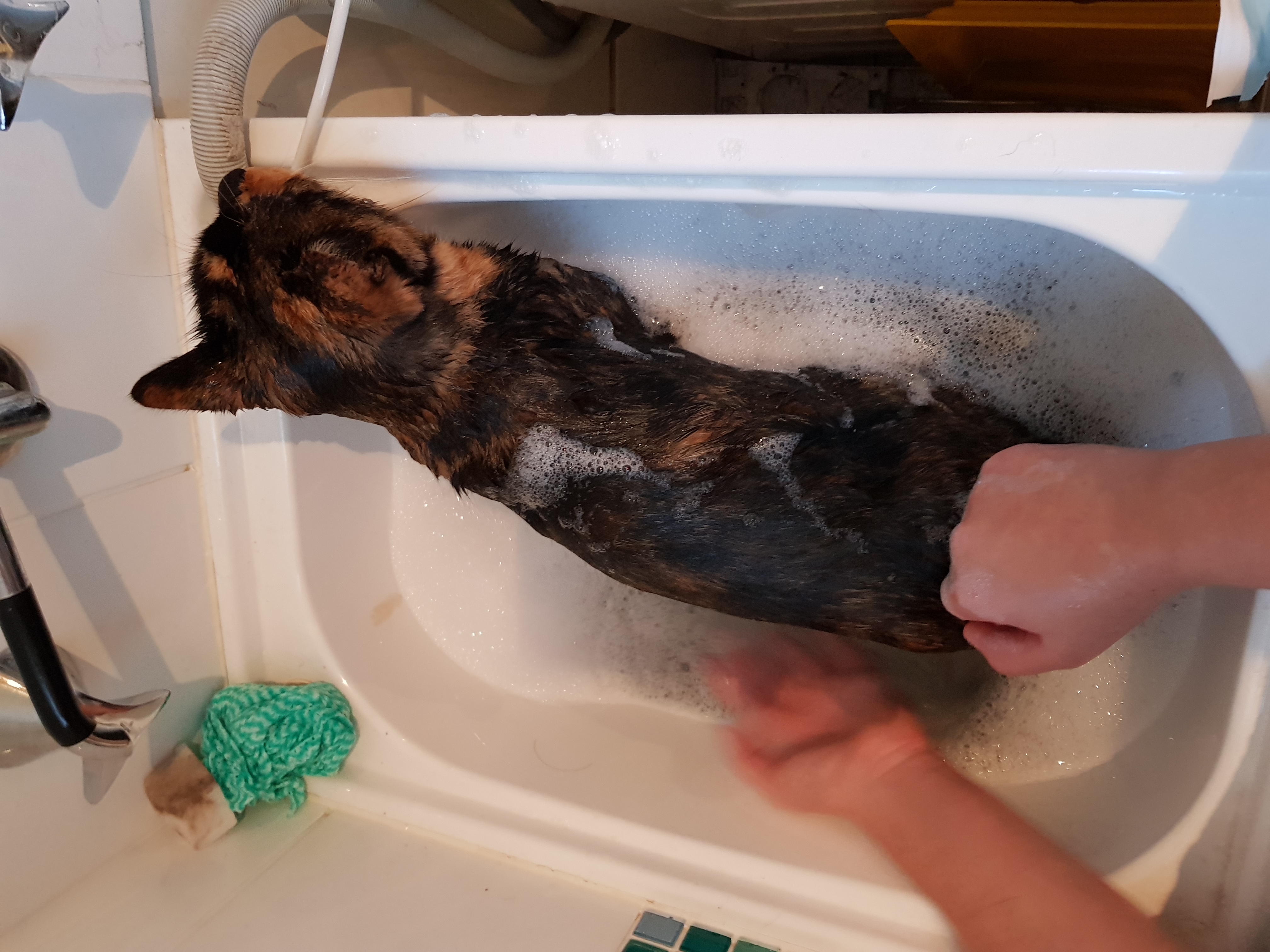 Bath time for princess meow meow, sandy loves her baths contrary to cats hating water, so they say. But we rescued her as a kitten living in a drain pipe by a river where she was catching fish in the shallows and we figured that being surrounded by water she had to adapt to survive.