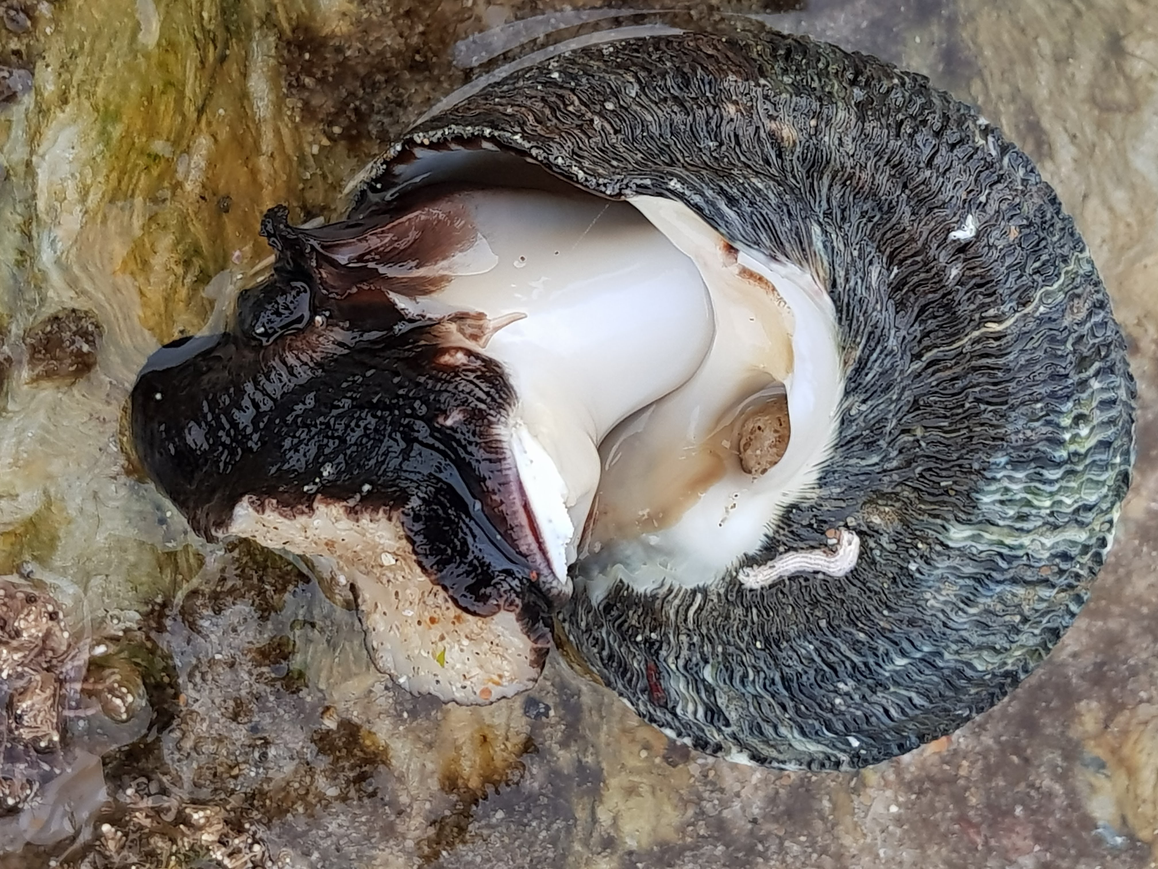 They slowly move around on the rocks eating algae and when the tide goes out they seal up there shell with a trap door shell that you can see in the last photo and this prevents them from drying out.