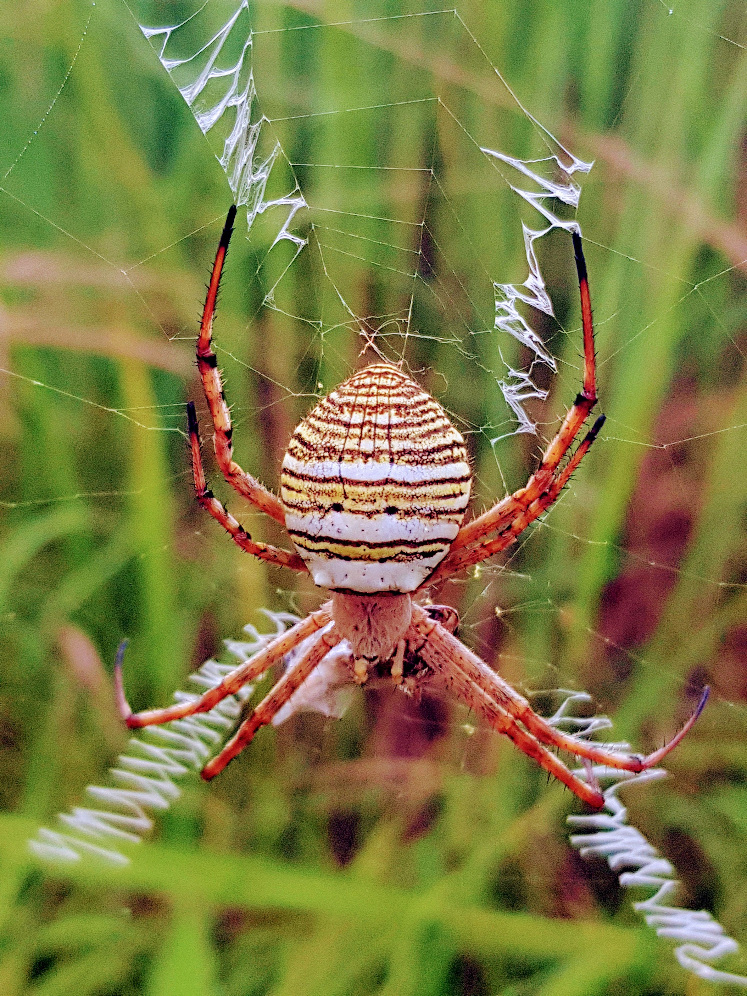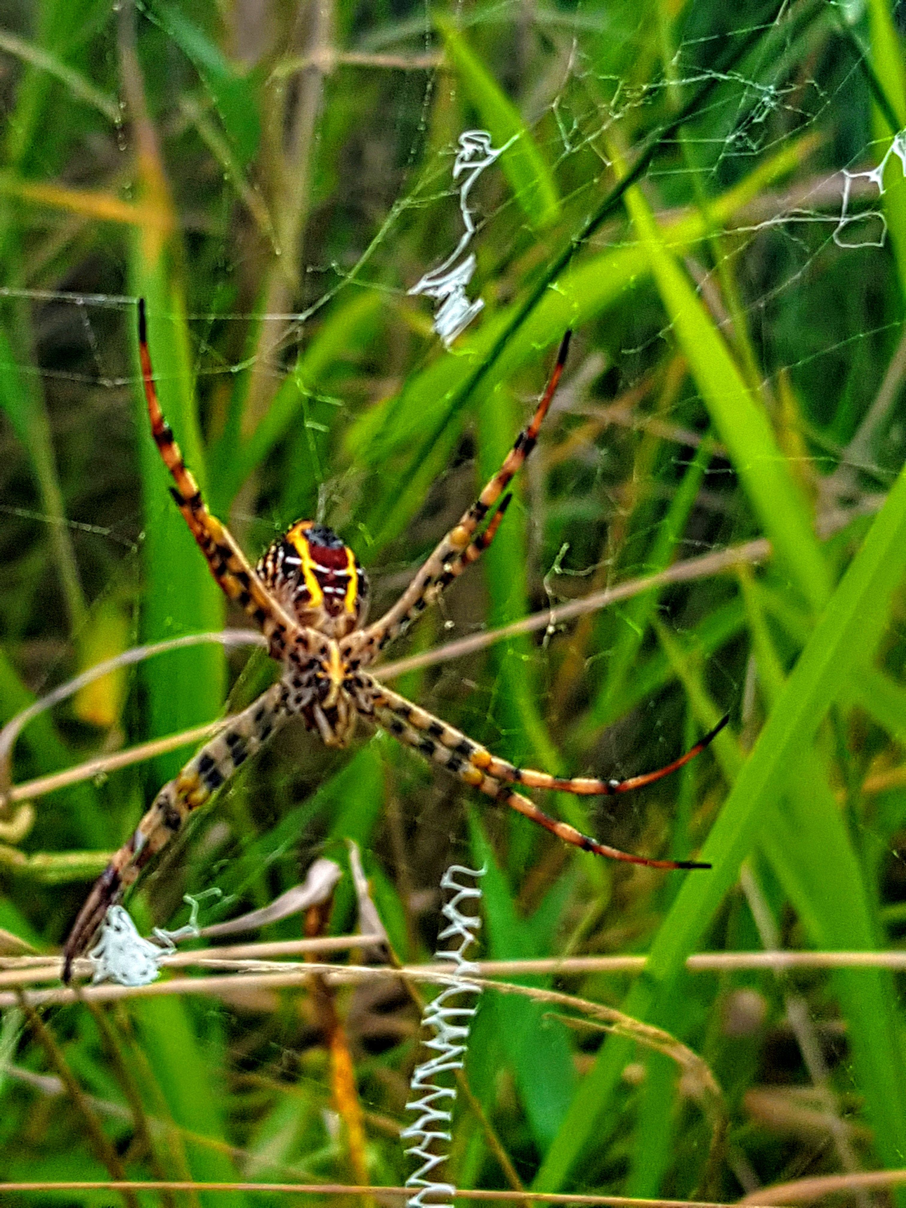 This is the saint andrews cross spider, and its not hard to guess why its called that when you look at the patters on their webs and the way they immatate the pattern with there bodies as well.