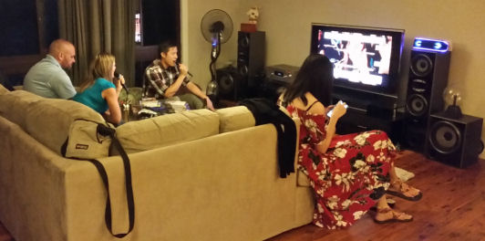 A friendly Karaoke battle underway...