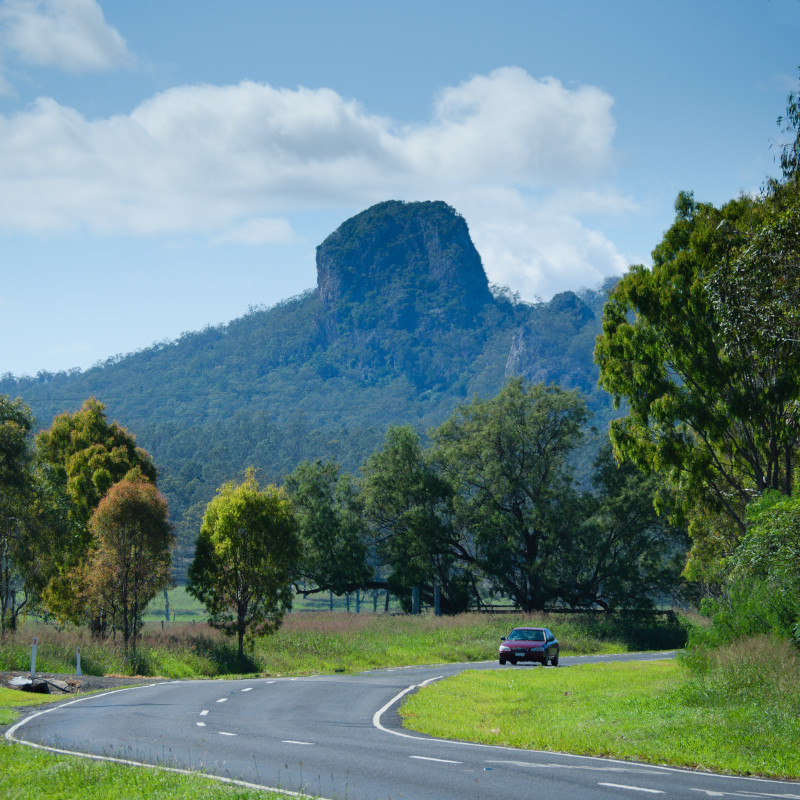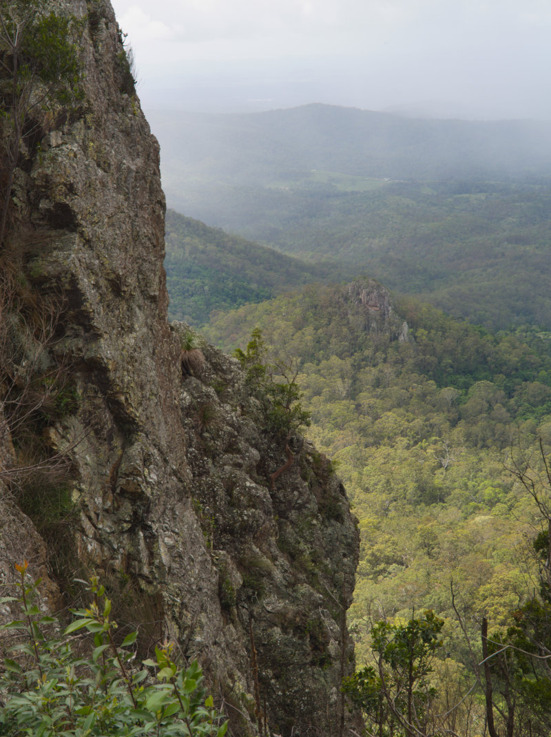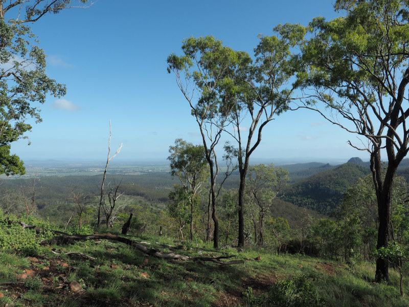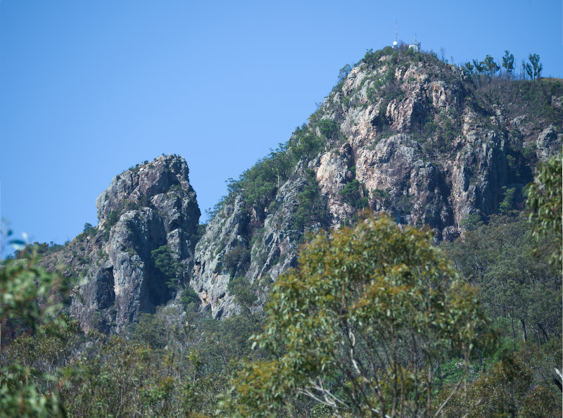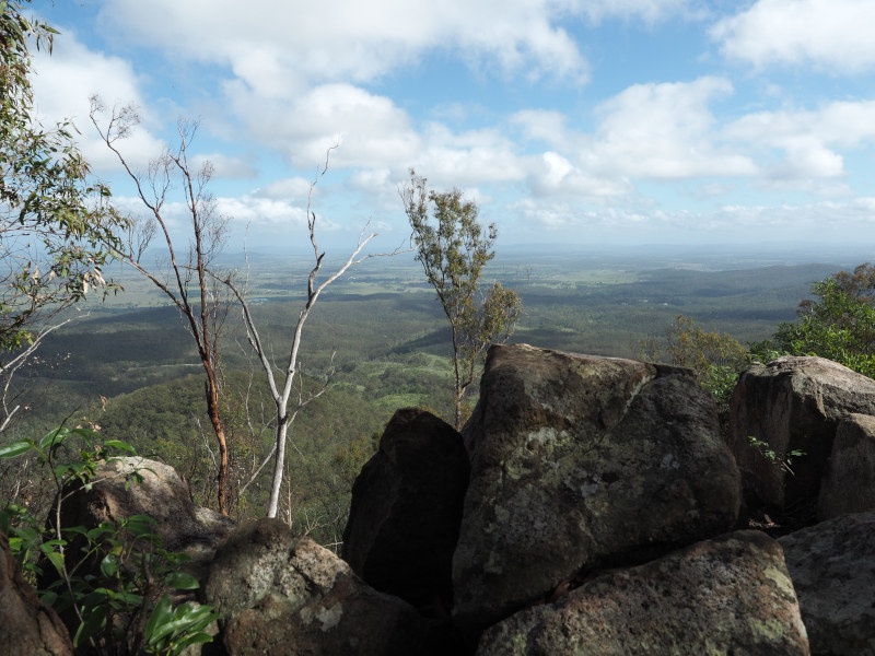 There is a walking track to the summit of Flinder's Peak which starts at the Flinders Plum Picnic Area. The Picnic Area is actually a nice spot itself and can be reached by turning off the Ipswich to Boonah Road near the town of Peak Crossing. It's well signposted but you know you're on the right road when you see the tree in the middle of the road.