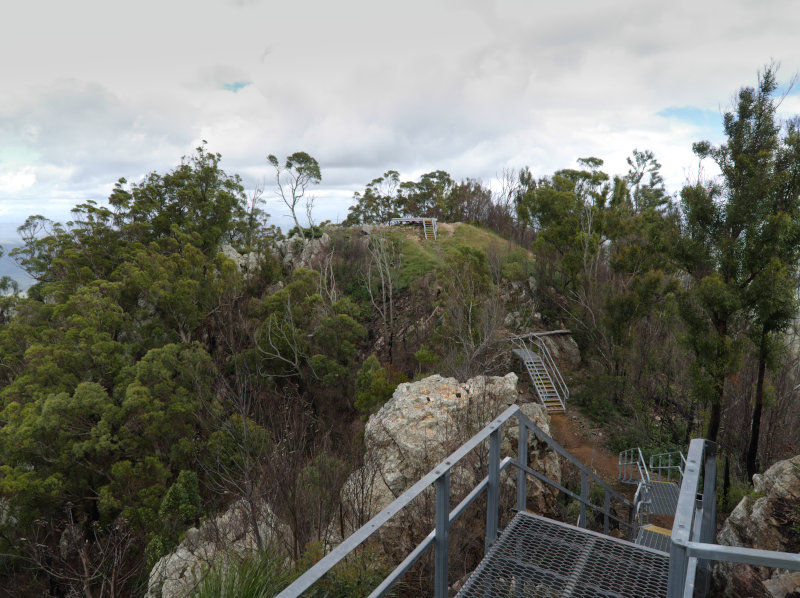 After scrambling across rocks and a few ups (and downs) you come to a lovely lookout. This is a great time to take a breather for the final push to the top. The extinct volcanic peaks are Mt Goolman (453m), Mt Blaine (455m) and Mt Perry (351m).