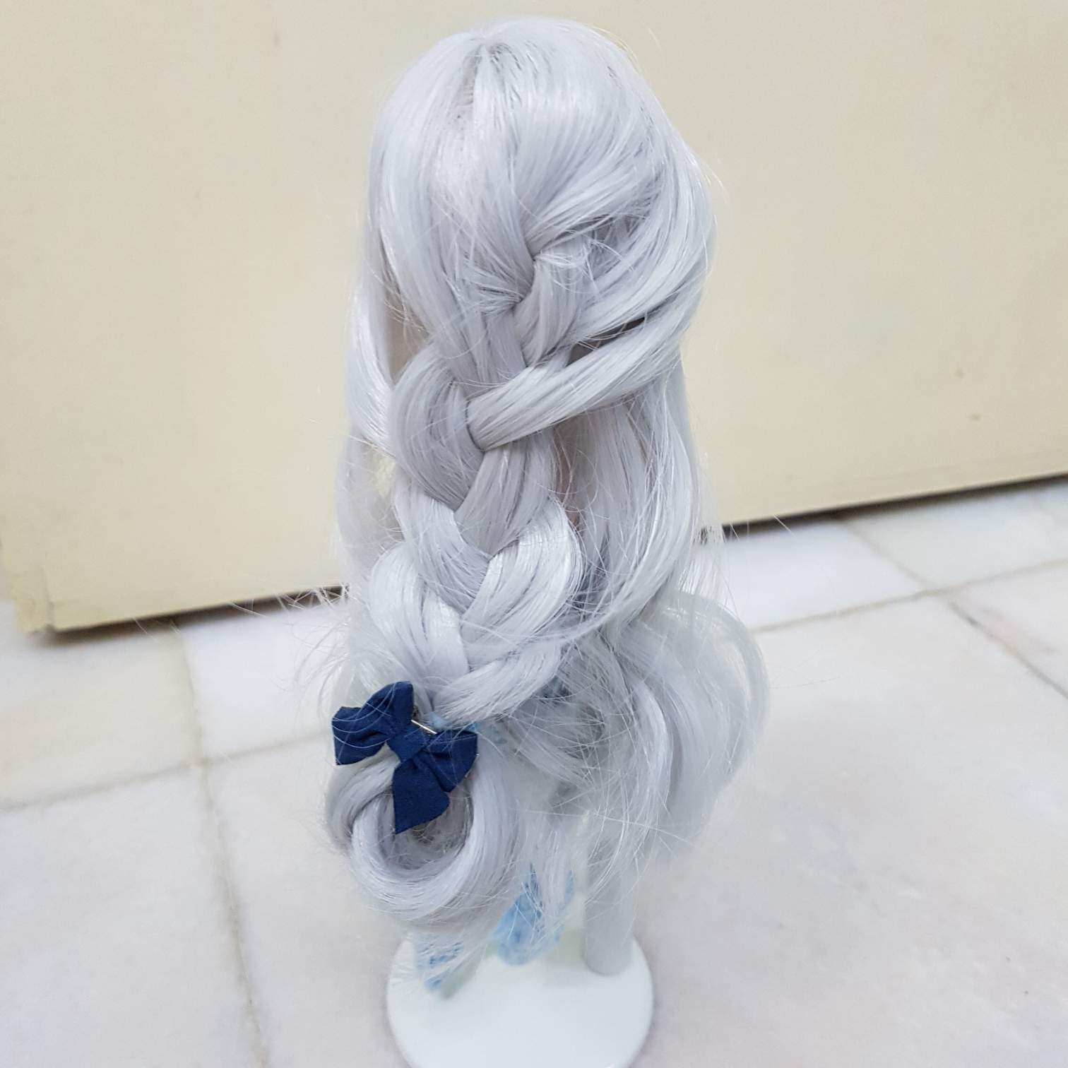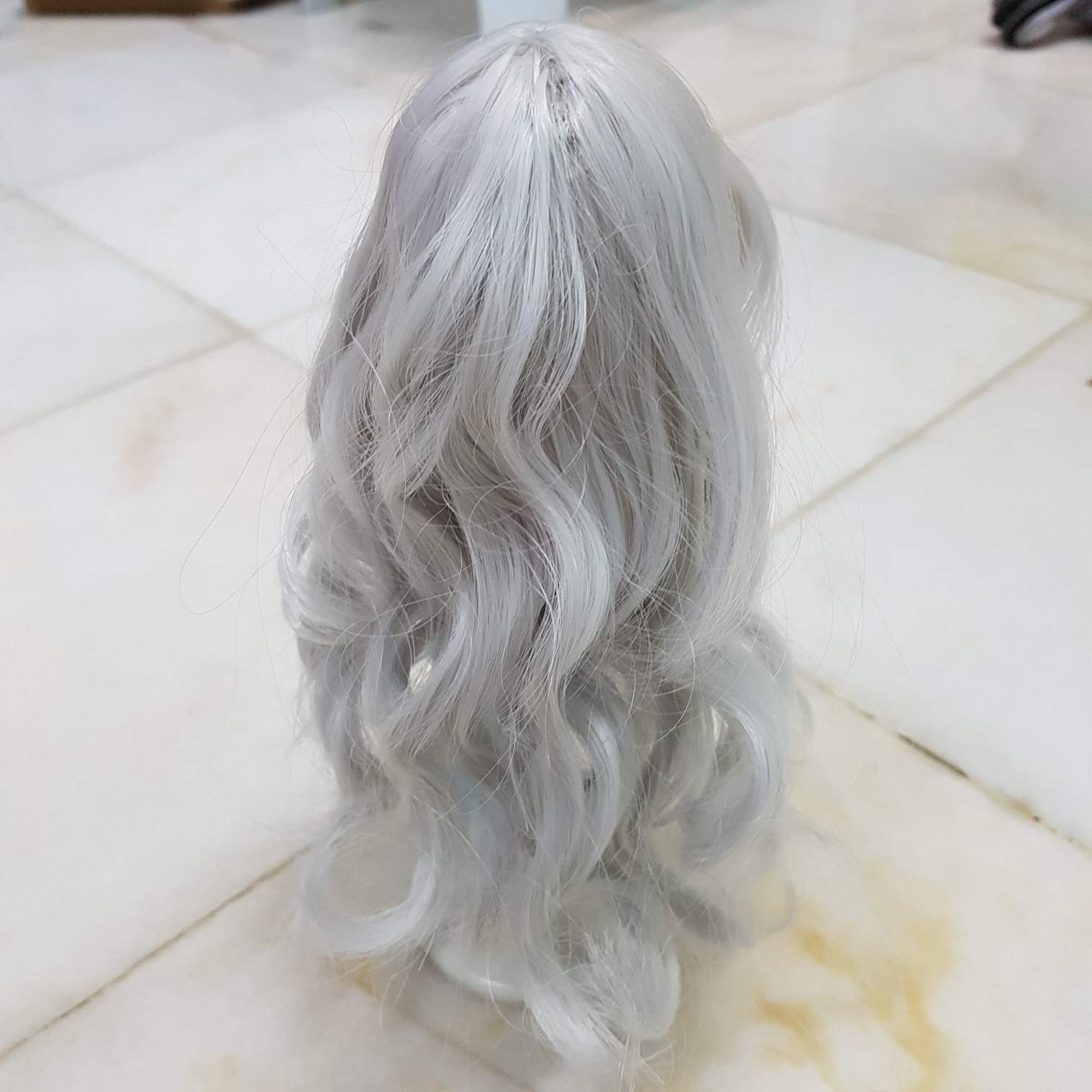 实在太过兴奋了,收到了期待已久的娃娃假发! 😊😊😊 网上有卖现成一顶的,价格比较贵,有限制头的尺寸。于是,我买的假发是一排的,价格比较便宜,可以自己制作各种尺寸。我选了灰色卷发给我的美人鱼娃娃。