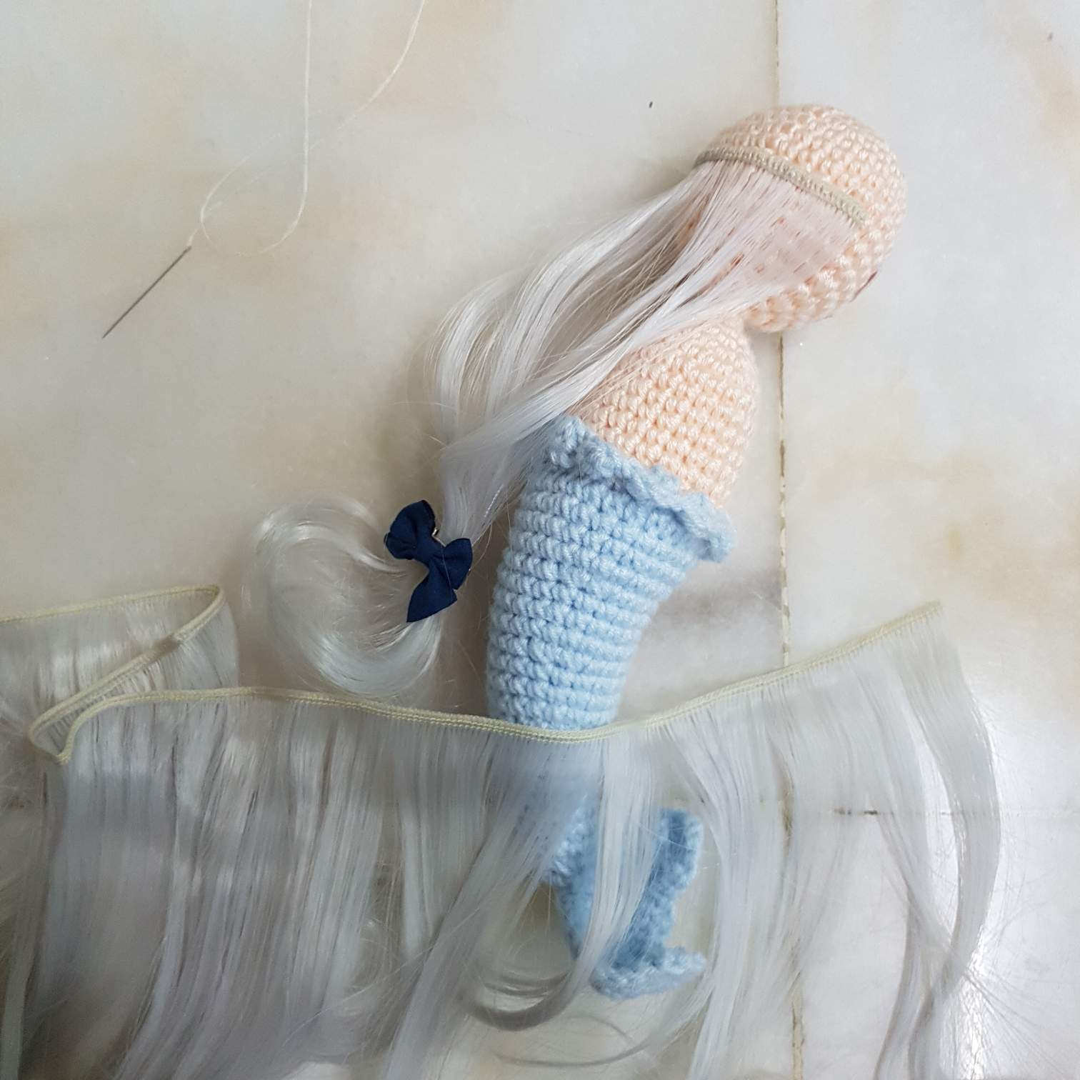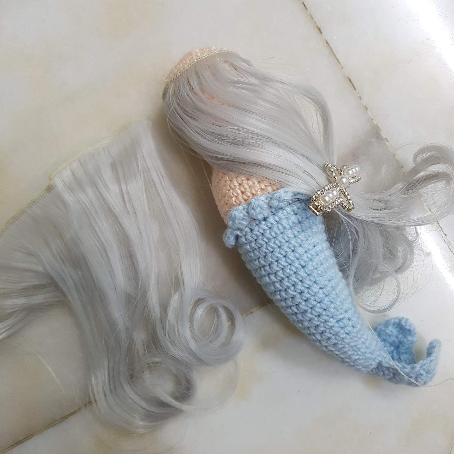 第一次给娃娃做了假发