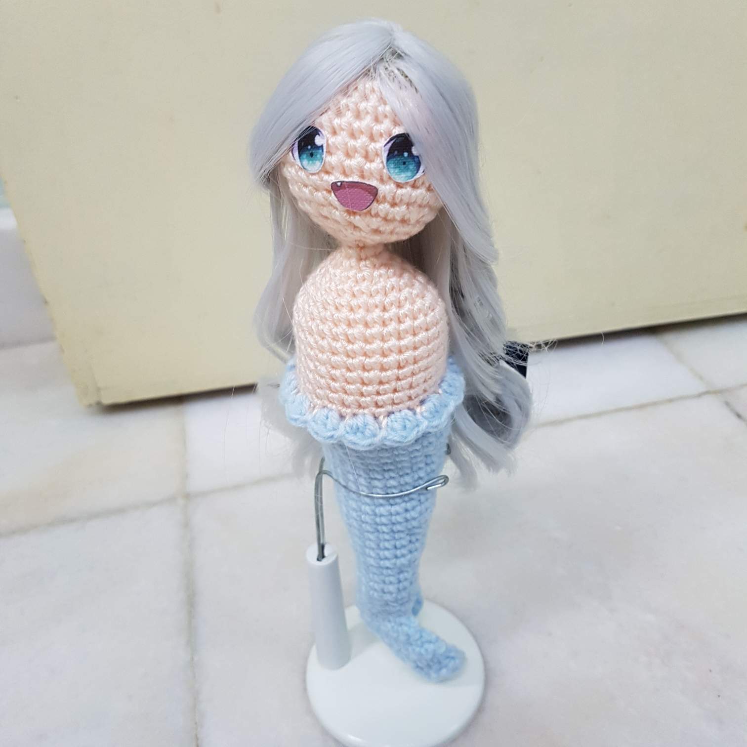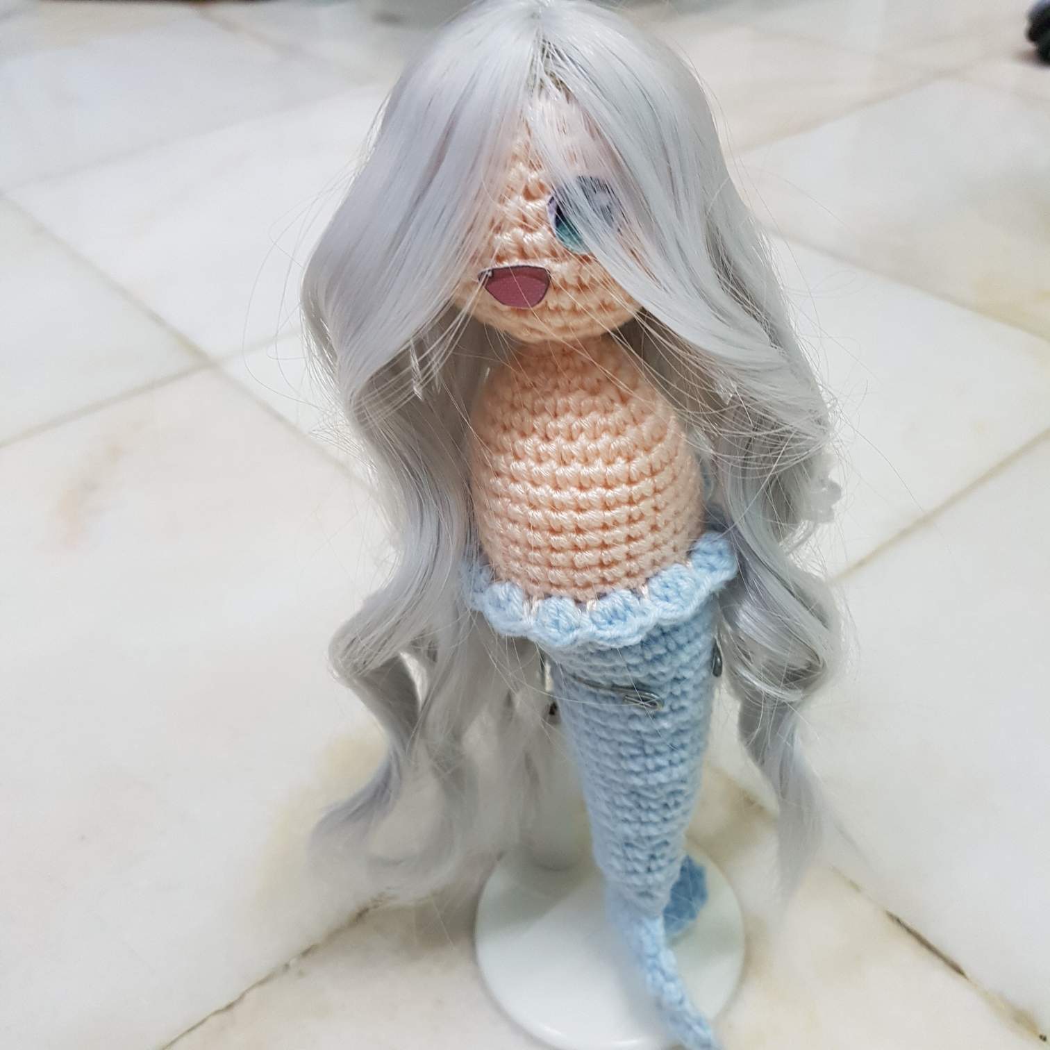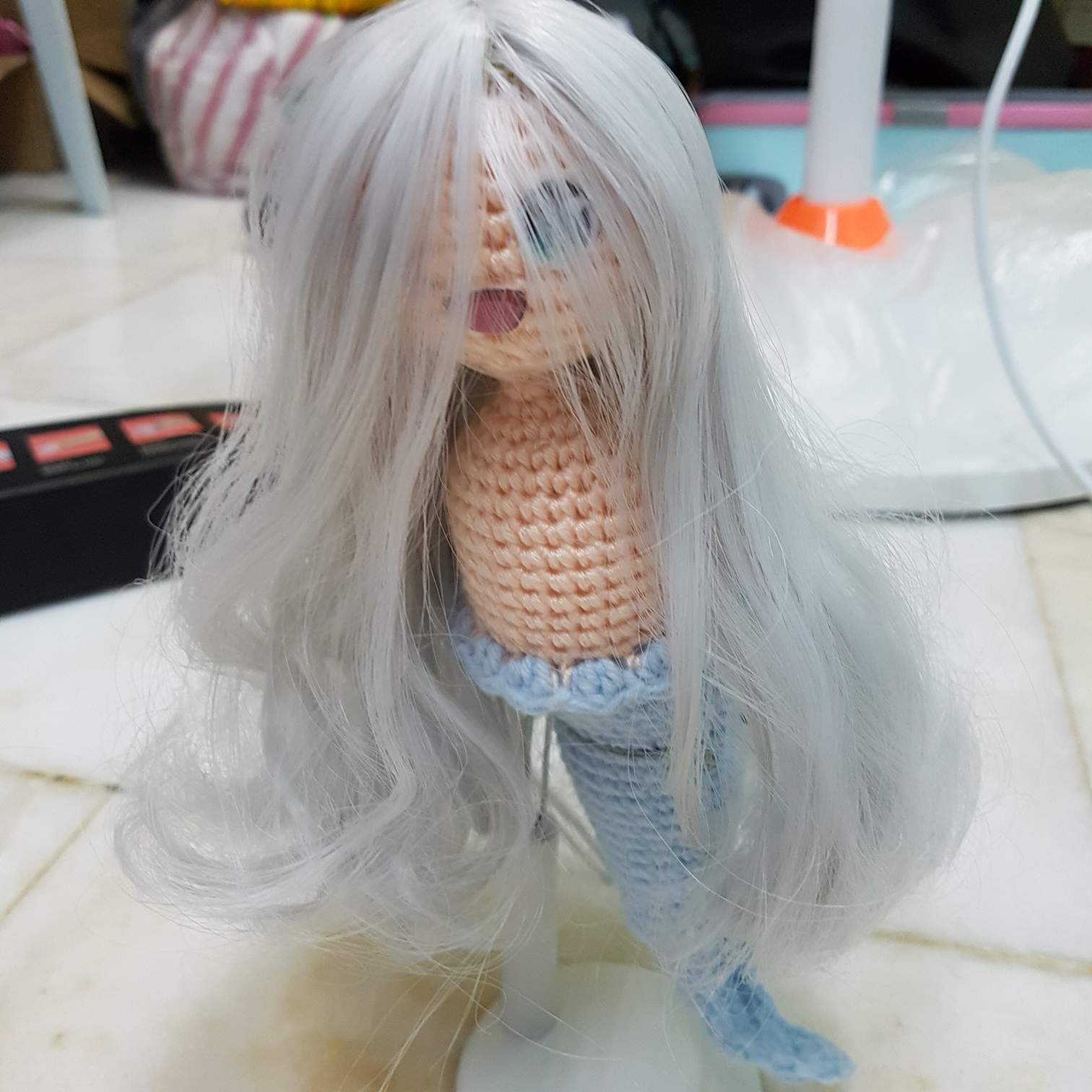 这样,娃娃就变得好看一些了😁 可是头发有点太长,于是我就把头发修剪了大概一寸。