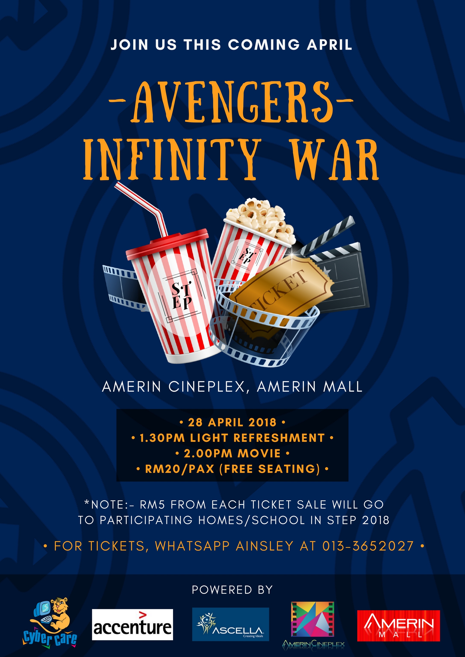 Okay! This might be non-steemit related, but it does deserve a shout-out, calling all movie lovers who wanted to watch Avenger: Infinity Wars and get to do Charity as well. @peixsley who is currently working with CyberCare Youth Organization is organising a Charity Movie Day at Amerin Hall, Seri Kembangan.