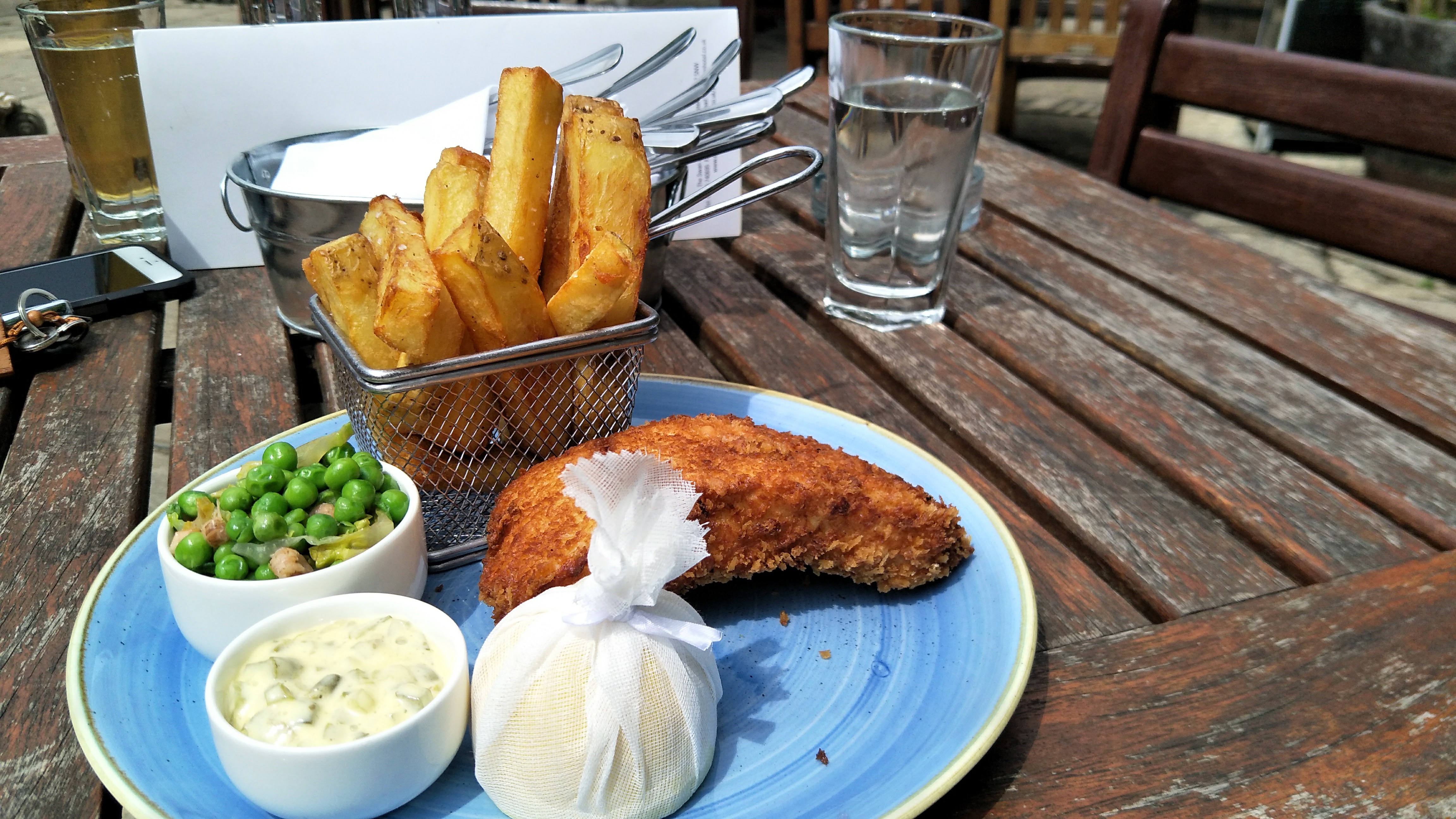 sky 请客的fish and chips . 谢谢你sky. 白色那个布袋很多人看来照片都问我是什么来的?