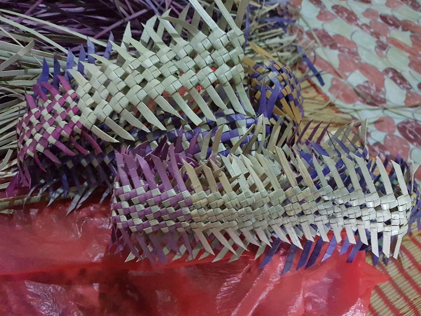 This headpiece is sold cheap at RM 10.00 only. It was made from pandan leaves and a tedious process to dried and make it more colorful.