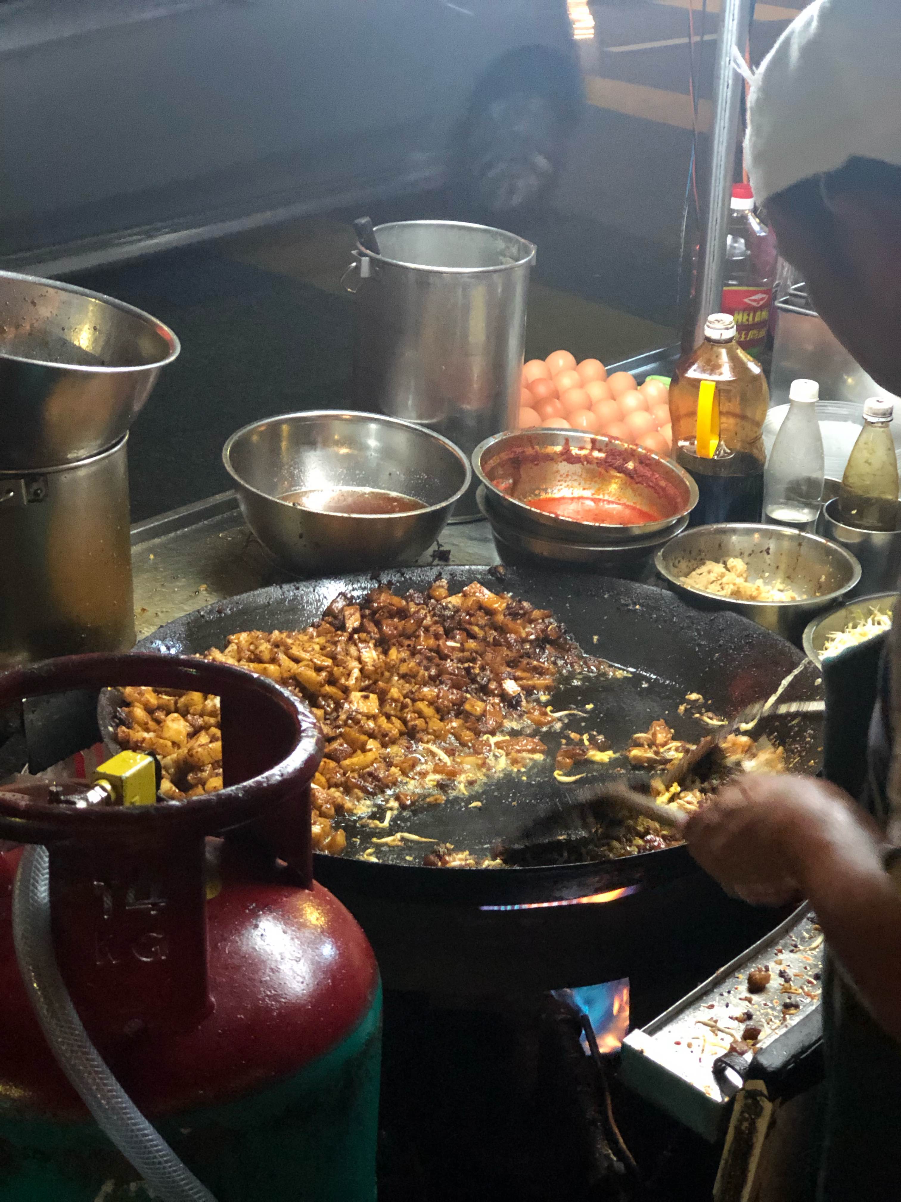 这在槟城协和小学大门前晚上才摆路边摊的炒粿角是我经常光顾的食摊之一。