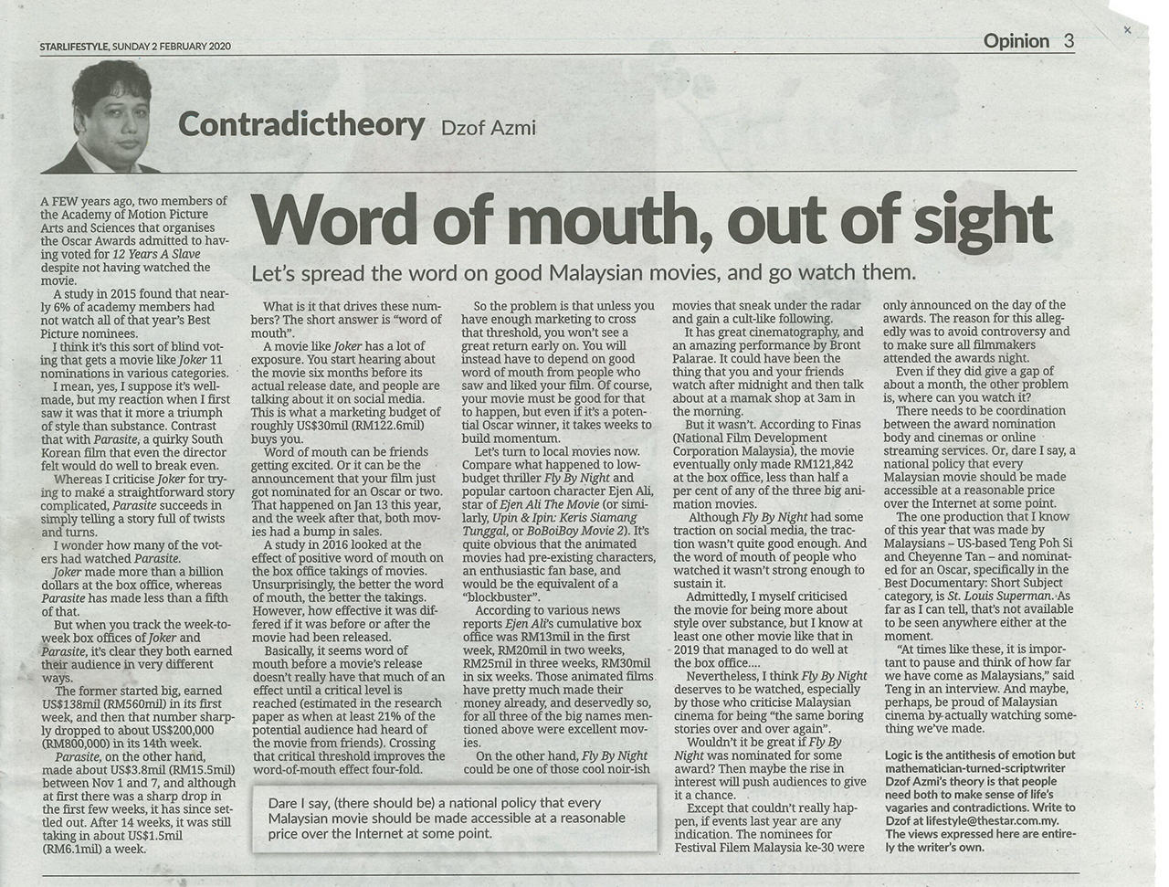 Link to the article - https://www.thestar.com.my/lifestyle/living/2020/02/01/lets-spread-the-word-about-good-malaysian-movies-and-go-watch-them
