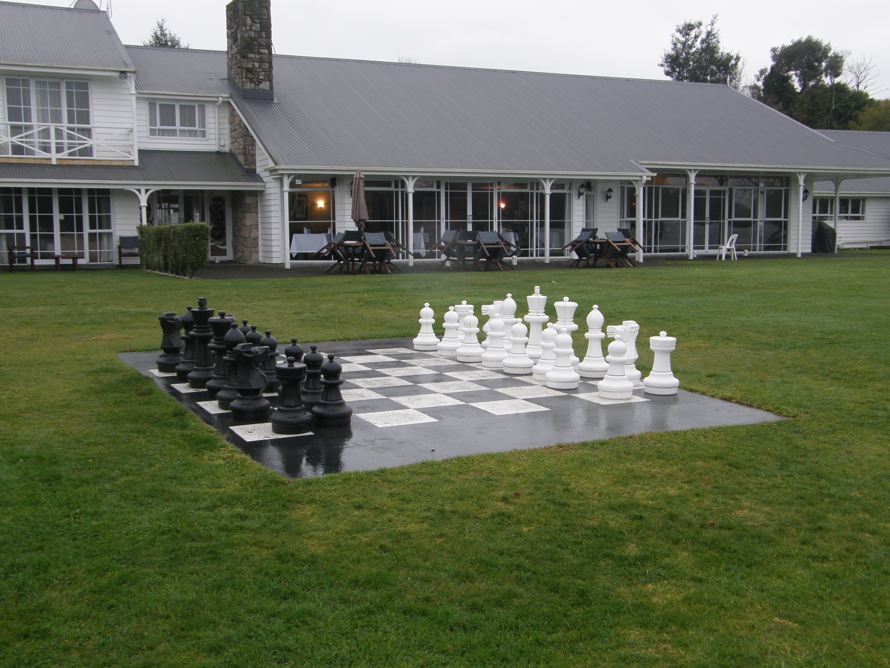 Looking back at the resort from the lake they had a cool chess board on the lawn.