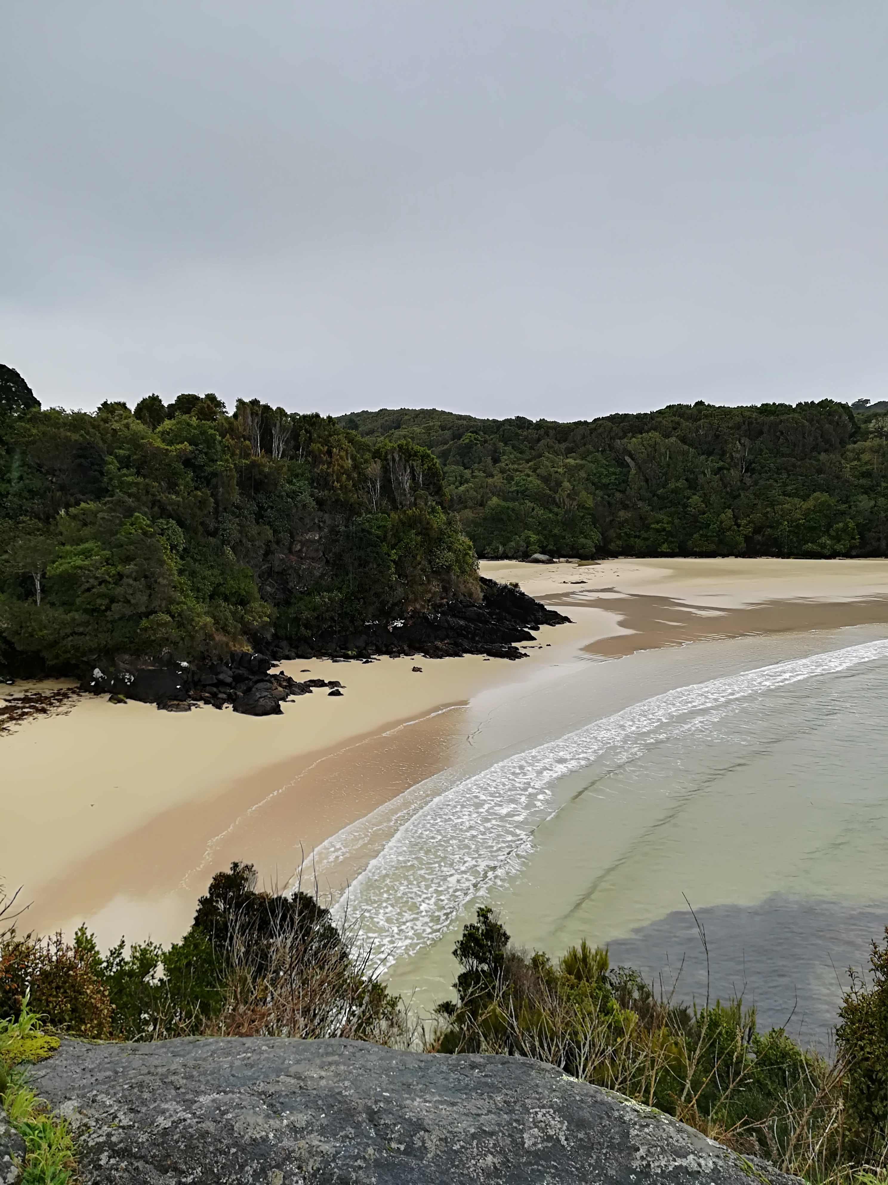 One morning on our short holiday at Stewart Island, we managed to spend a morning doing a short day walk at Stewart Island. This track took us to Bathers Bay which is a white sand beach. Even though it was raining, we decided to put on our rain jackets and get out.
