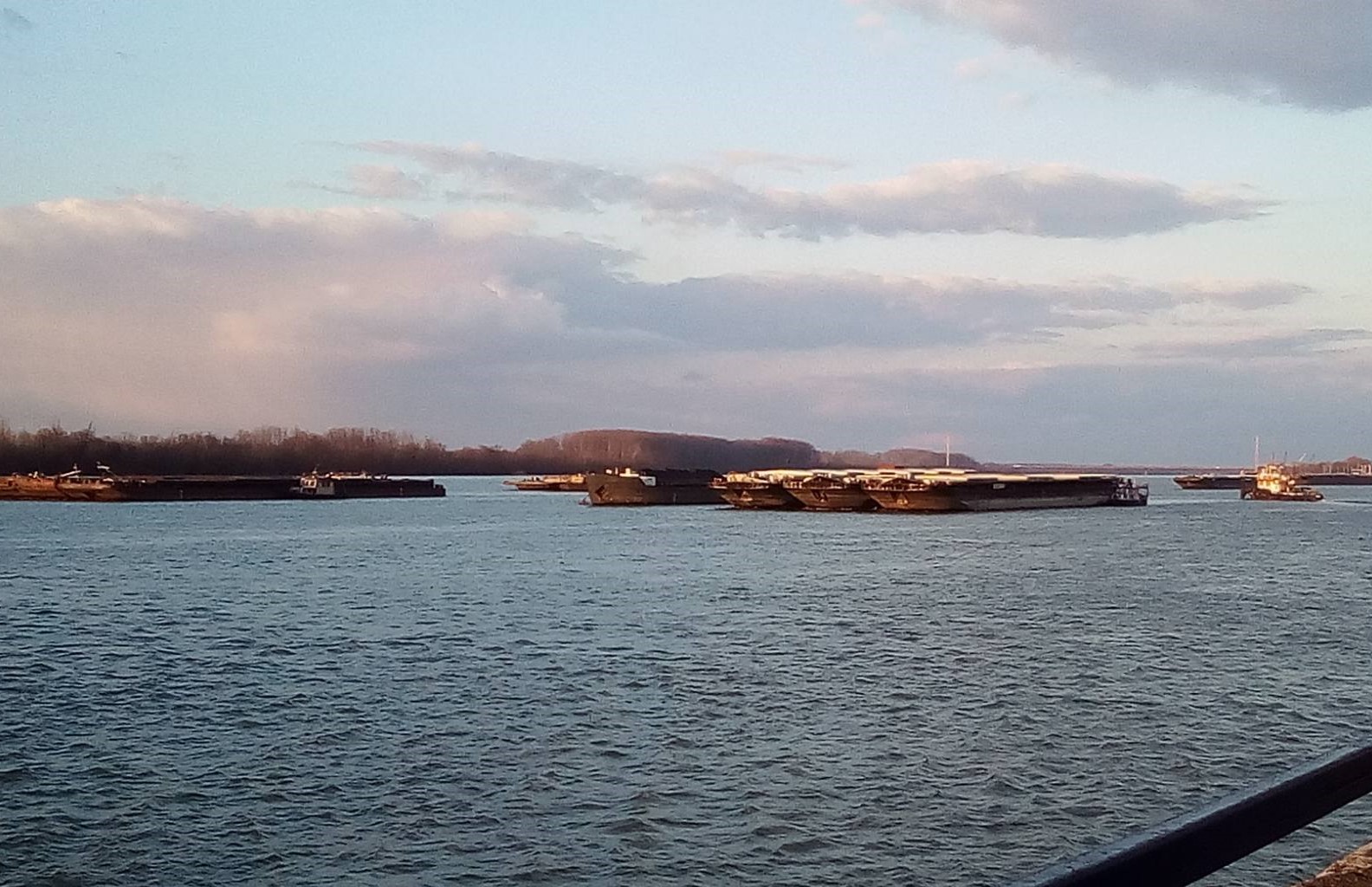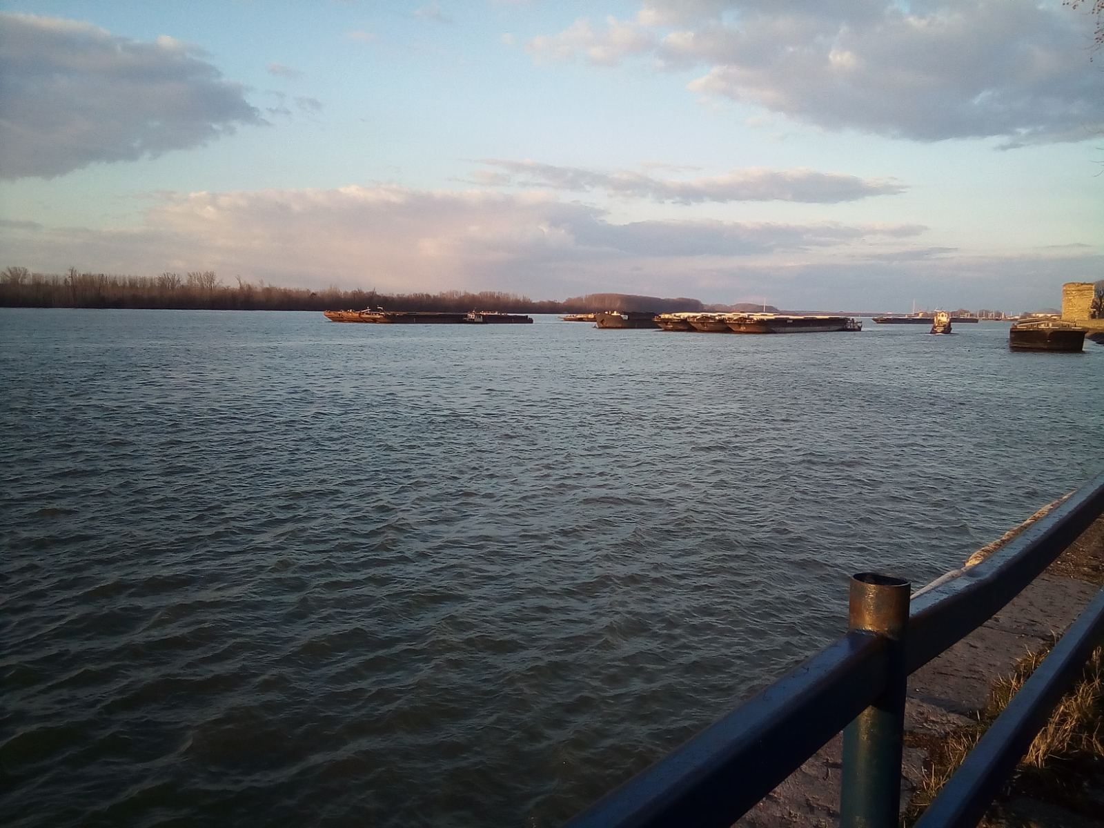 I post these pictures with a slight delay - an unexpectedly beautiful sunset, moderately strong wind and ships in the middle of the river.