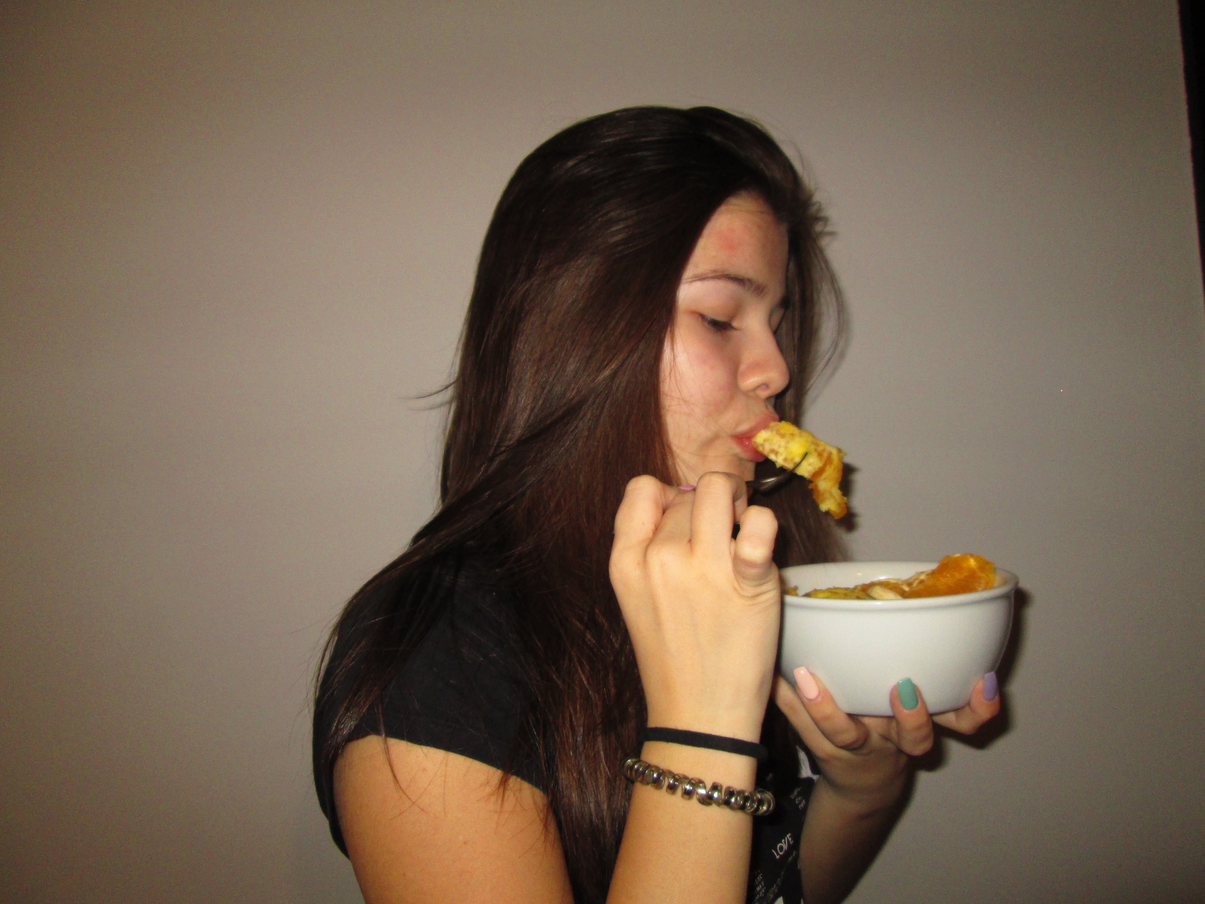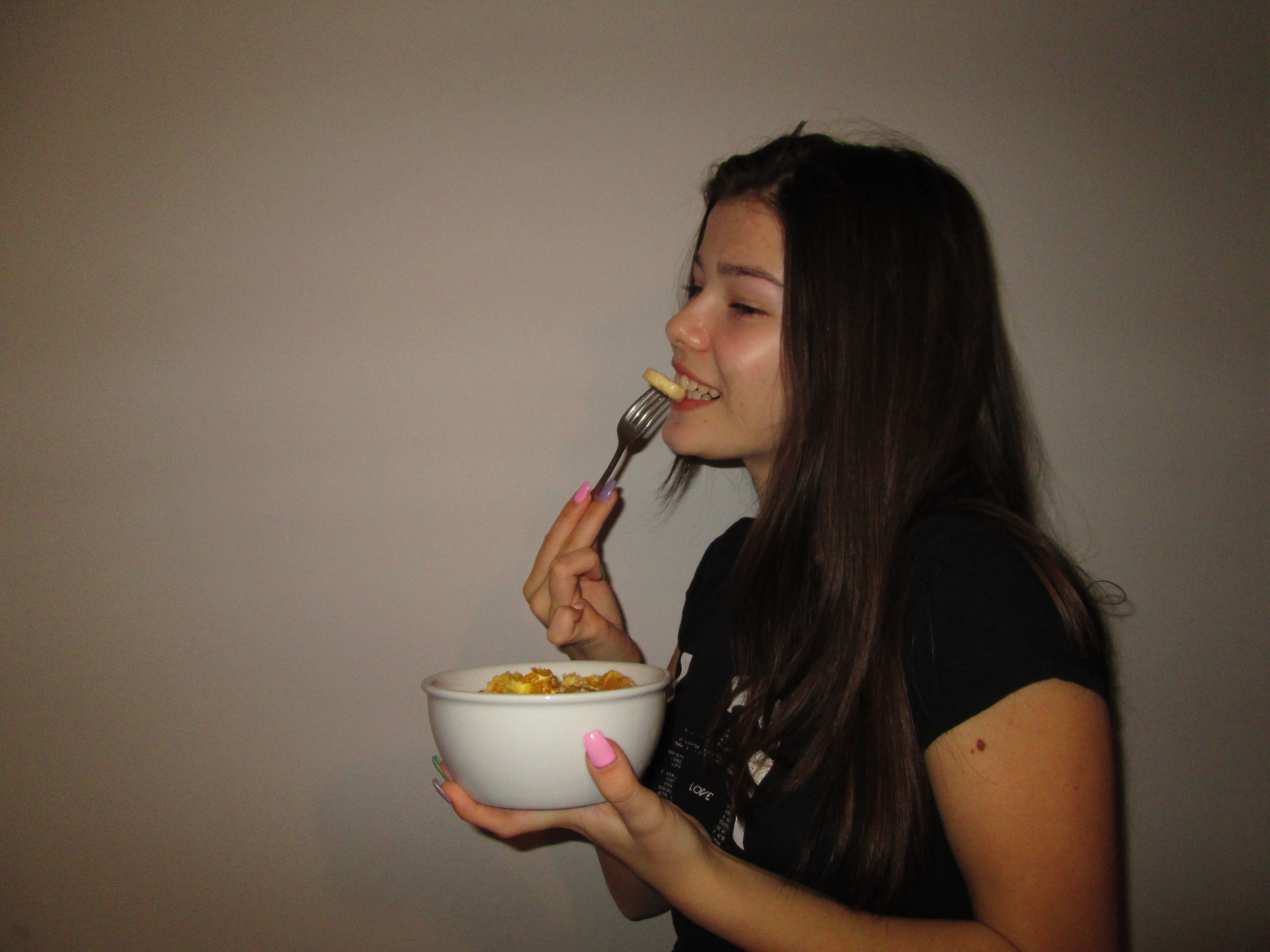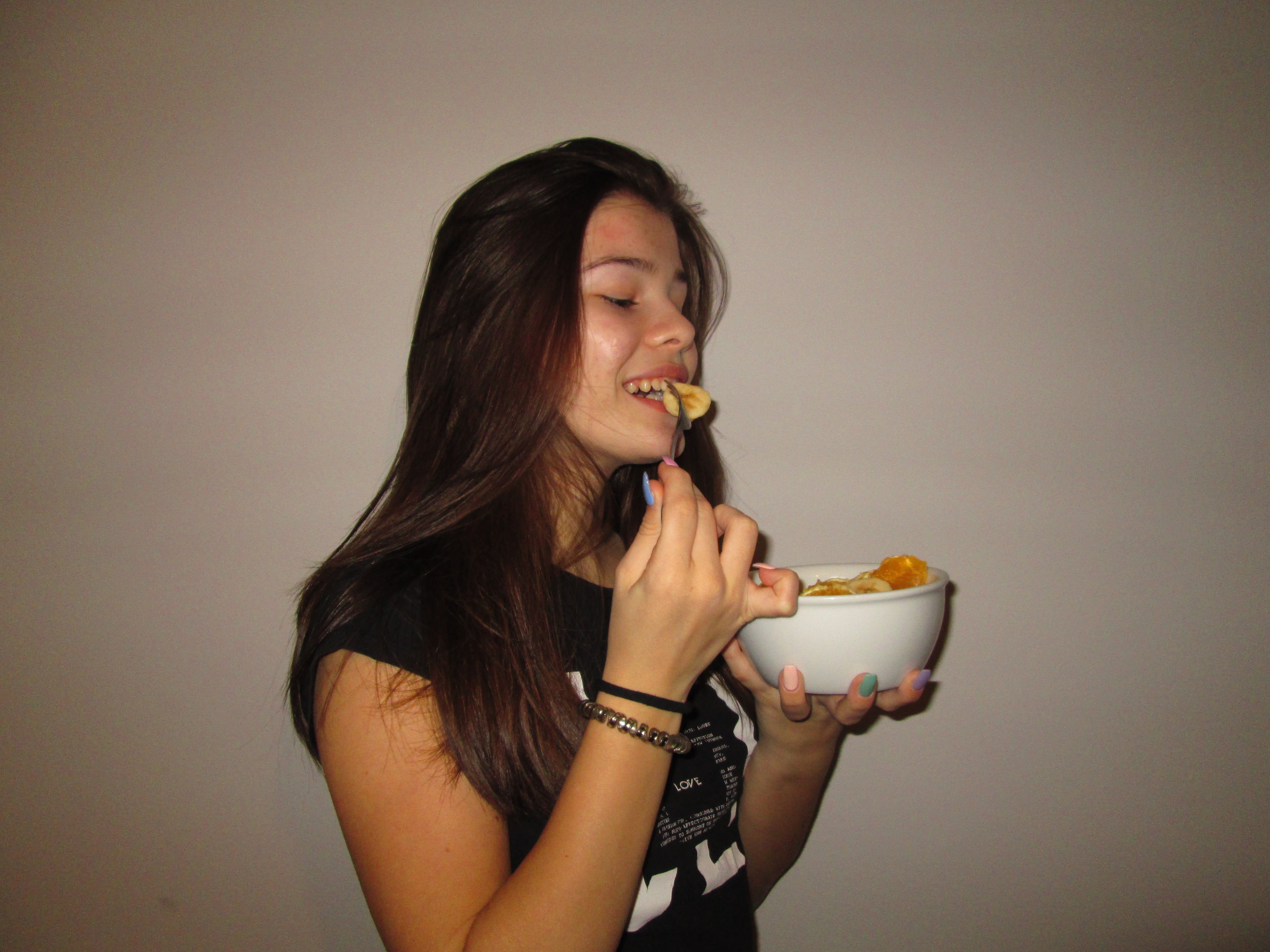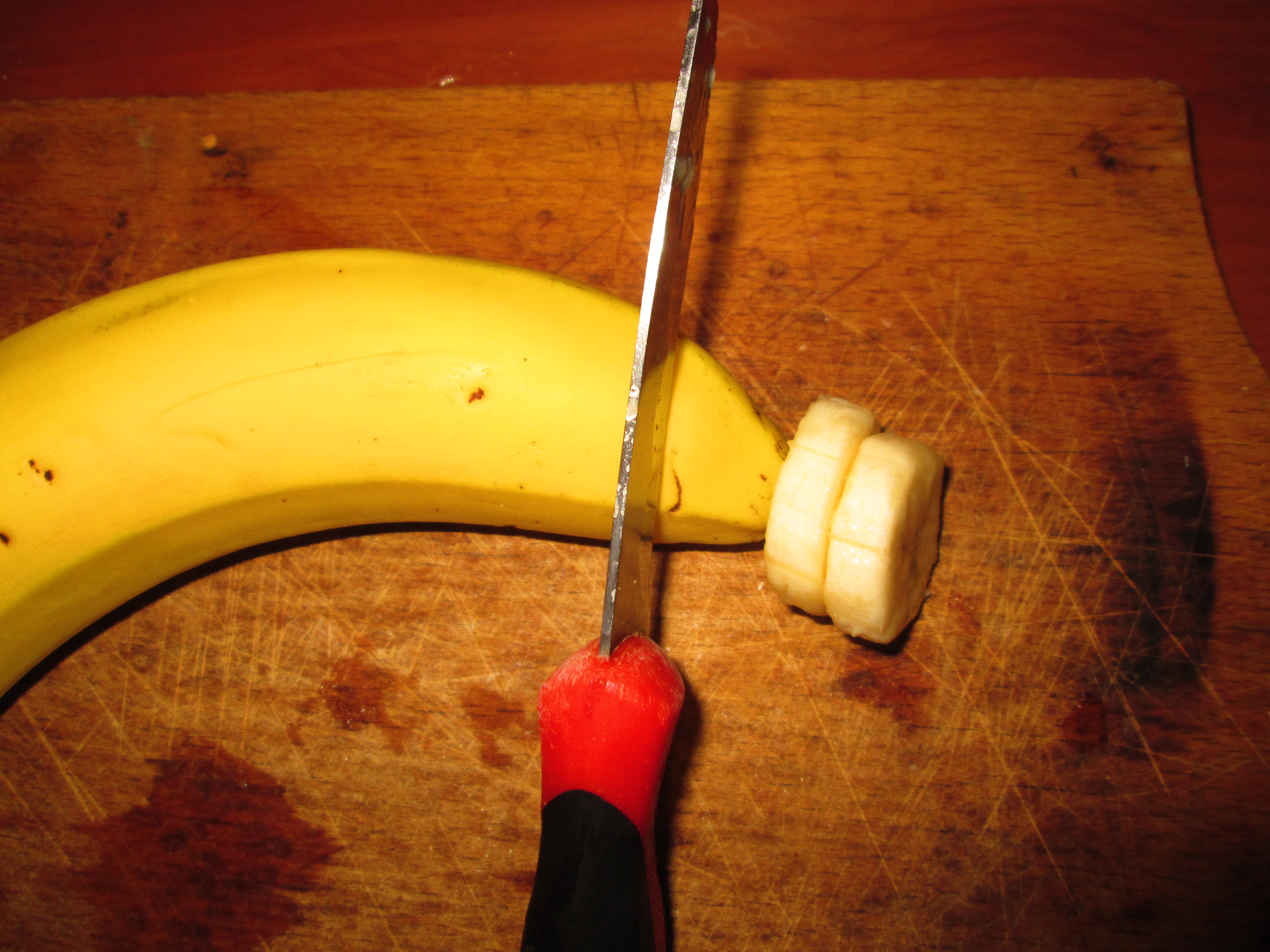 My fruit salad consists of one banana and one orange. I like this combination because oranges are acidic and contain vitamin C and the banana is more sweet and not acidic at all and contains vitamin B6 and C. So those two fruits make a great compromise in my mouth.