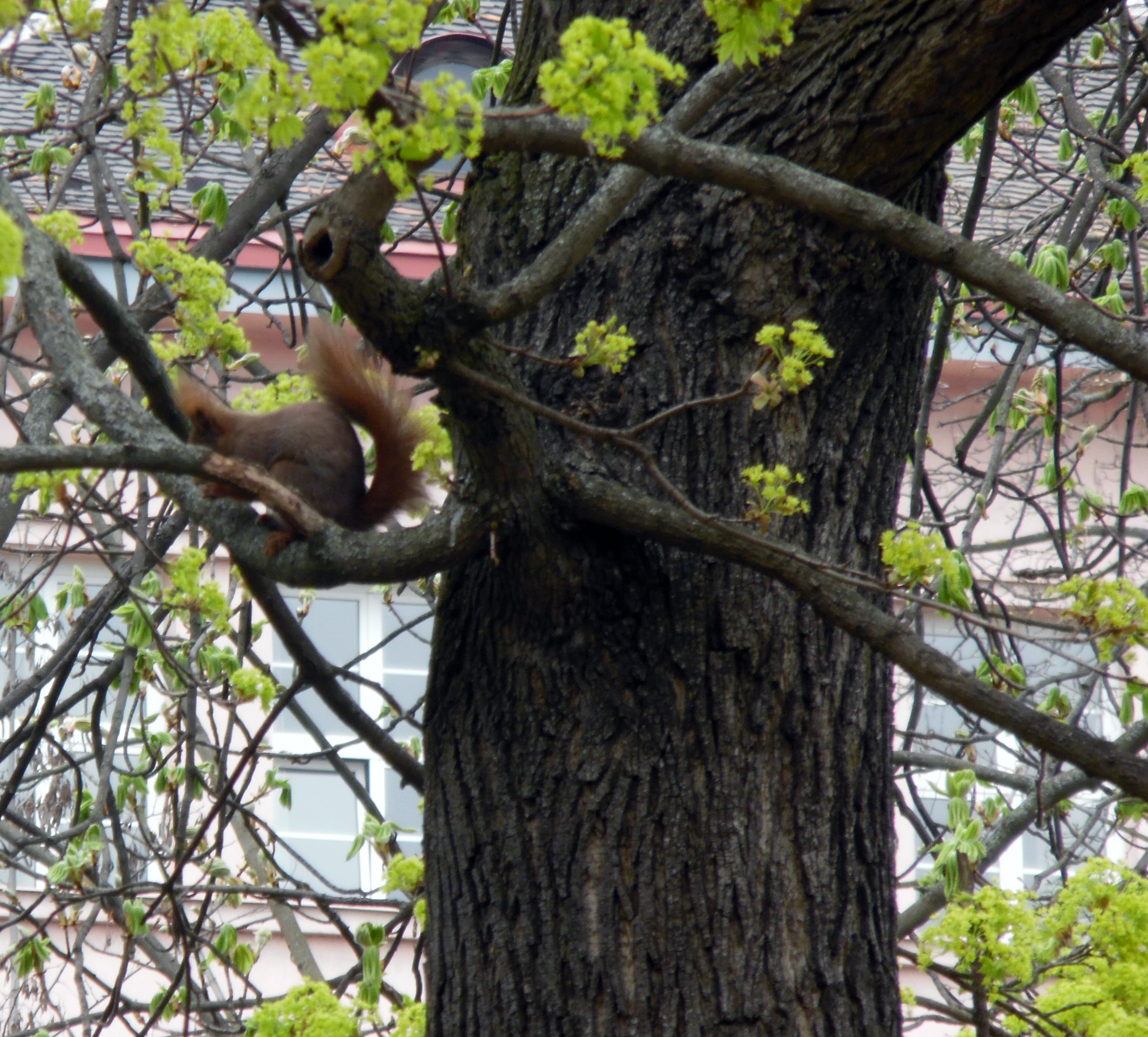 We have squirrels living in a big maple tree next to our house. The always jump on to our roof and scurry across it. It took us a while to figure out what the noise was when we first moved here. They also like to take apples from a tree in our neighbors yard, take a few bites of them and then drop them in our yard. They are pretty funny.