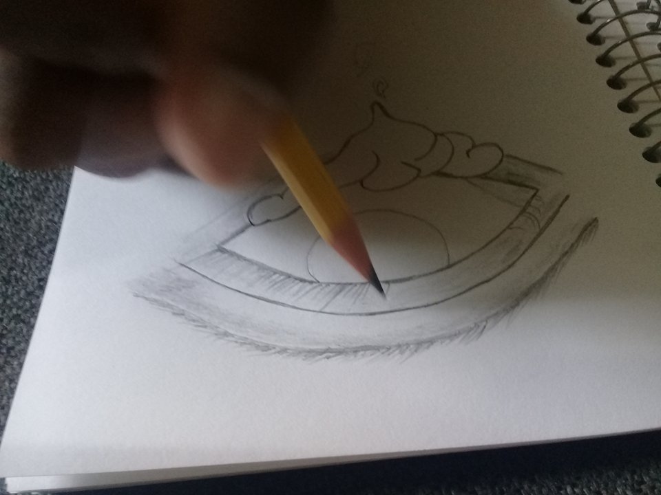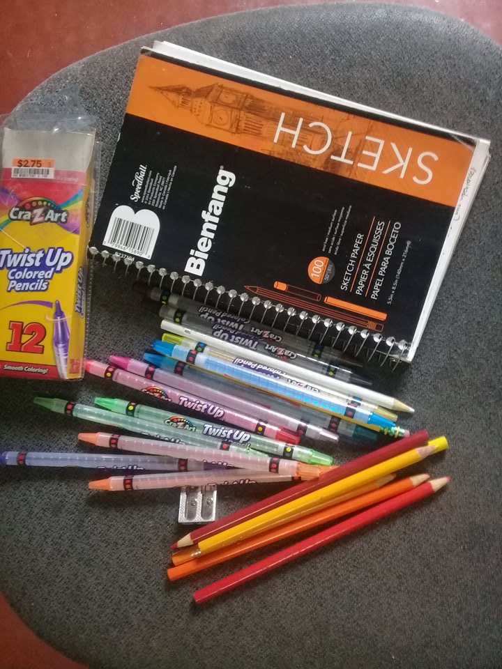 So I get the sketch notebook of my son and his pencil and colored pencils, then start to imagine how to make it.