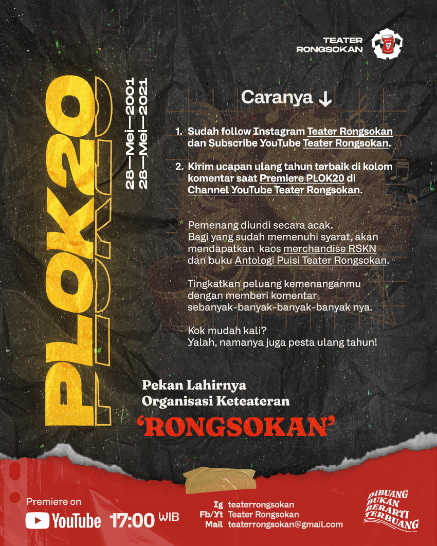 Pantau ig @teaterrongsokan dan Youtube-nya untuk dapetin GIVEAWAY spesial.