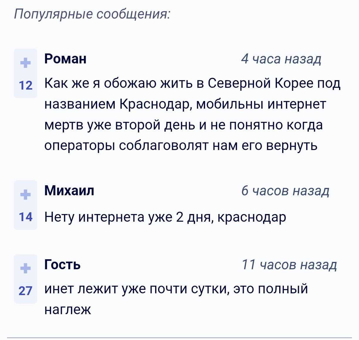 ⚡️ В Краснодаре двое суток нет связи – отсутствует мобильный интернет и возможность совершать звонки