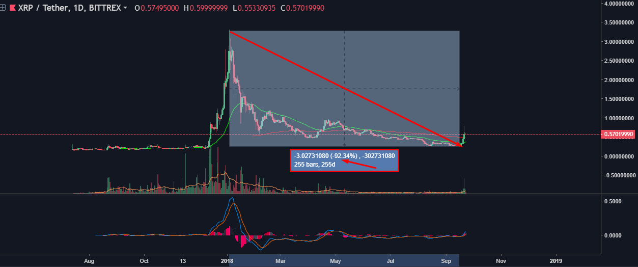 you can see xrp all ready all time down trend ( -92.34% ) . and volume so very low .
