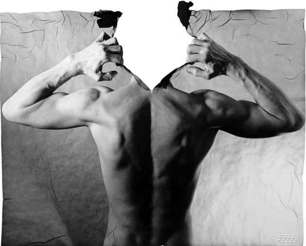 Michal Macku has invented his own technique, which he named ‘Gellage’, whereby photographic emulsion is removed from its paper backing, leaving an image that is semi-transparent and flexible. This allows the image to be stretched and reformed – sometimes combined with other images to make imaginative, distorted and/or surreal scenes – before the artwork is adhered to durable paper.