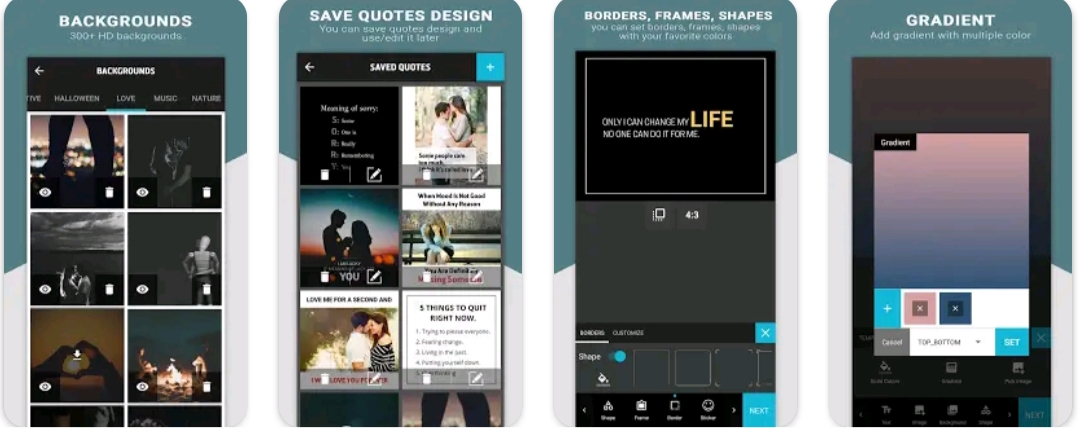 Been using this app for a while now. It is one of the best free apps out there. Works better than most of the paid ones. It is so better, that I wouldn't mind paying them. Just an honest review from a person who writes a lot of quotes. Go for it. It is shockingly super amazing apps to make your own quotes and also to get some online quotes.. I have created more than hundereds of quotes through this app and it never let me down.. keep goint Quotes Creator team..