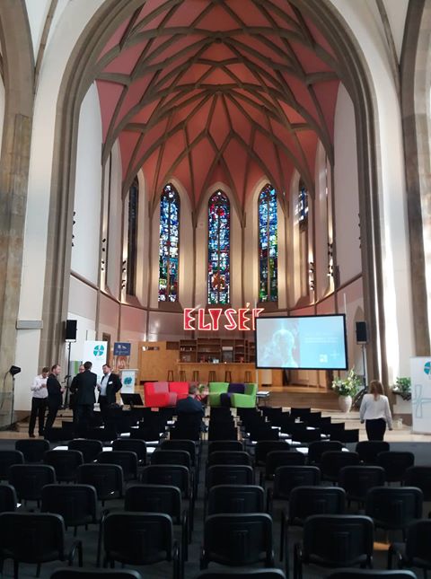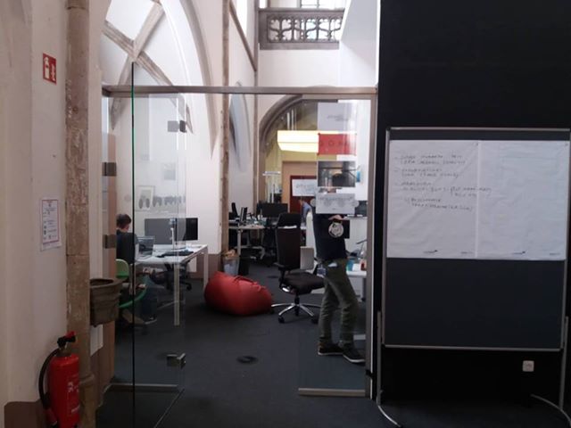 - Startups have the possibility to apply for a (small) fixed working place (as startups mostly do not have the money to lease an office). These places are a kind of open-plan office in the church.
