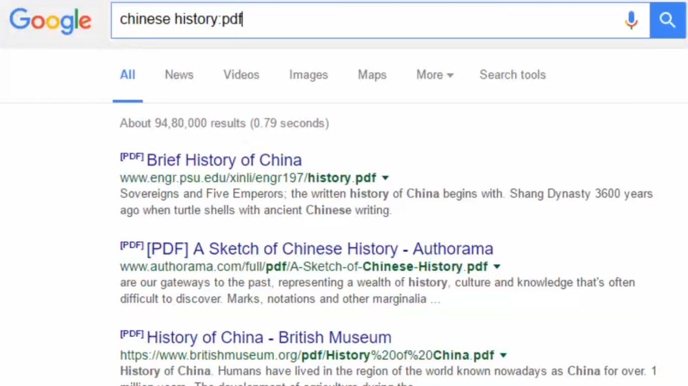 If you want to find specific file types in a search result, then after typing the colon, enter the name of the file type and search. Such as chinese history: pdf, doom3: mkv etc.